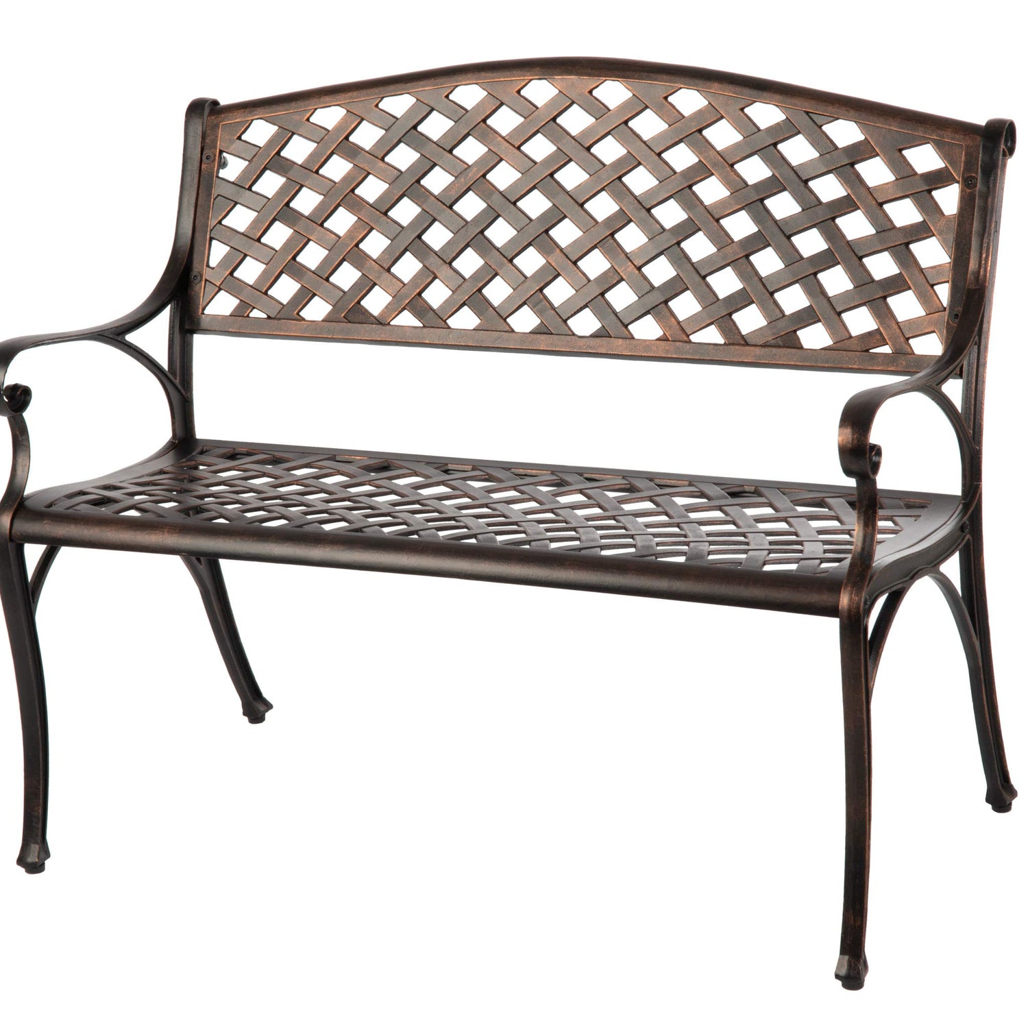Balkene Home 61491 Patio Bench Cast Aluminum Lightweight Sturdy Bench Perfect for Relaxing Pause in Garden, Backyard Patio Basketweave Design - Antique Bronze Finish
