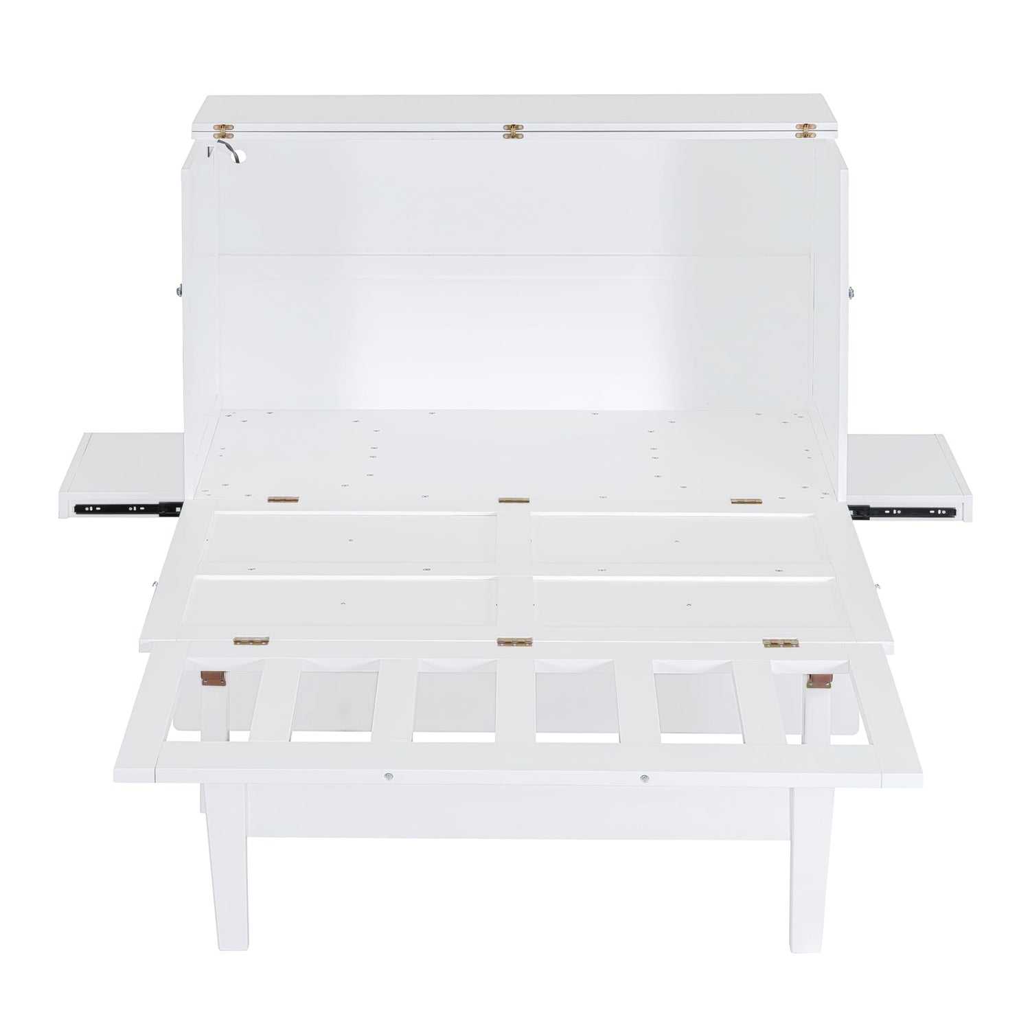 Ball & Cast Murphy Bed Full Szie,Cabinet Hideaway with USB Port and Removable Shelves,Wall Bed W/ 2 Movable Desks,can be Folded,Platform Bedframe for Kids Bedroom,Student Dorms,White