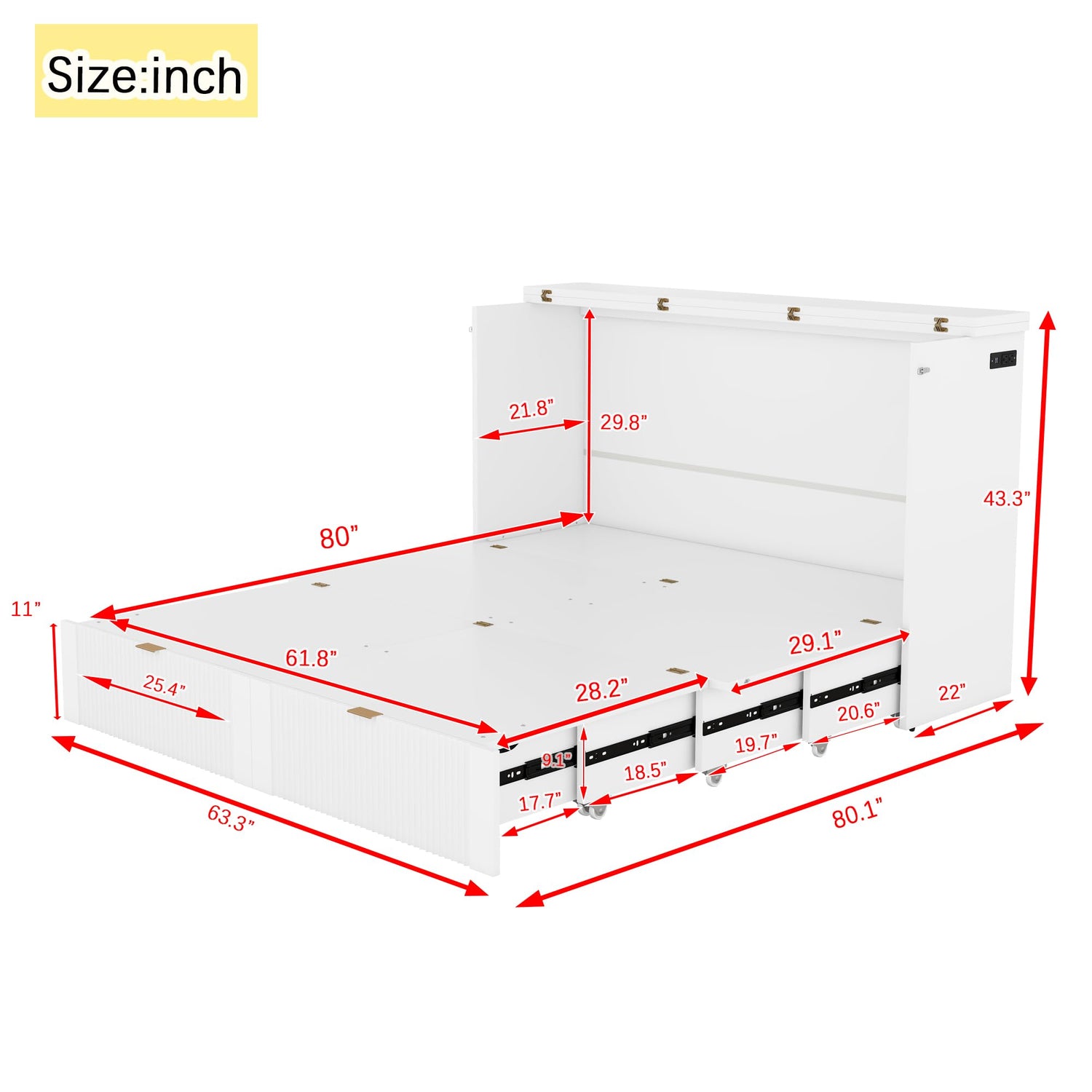 - 【Multi-Functionality】: Transform your space with this Murphy Bed Queen that seamlessly converts into a Murphy Bed Cabinet using a roller skate mechanism. Ideal for multi-use guest rooms, home offices, or home gyms, this Wall Bed offers additional convenience with built-in sockets, USB ports, and two storage drawers when folded into a Cabinet Bed.