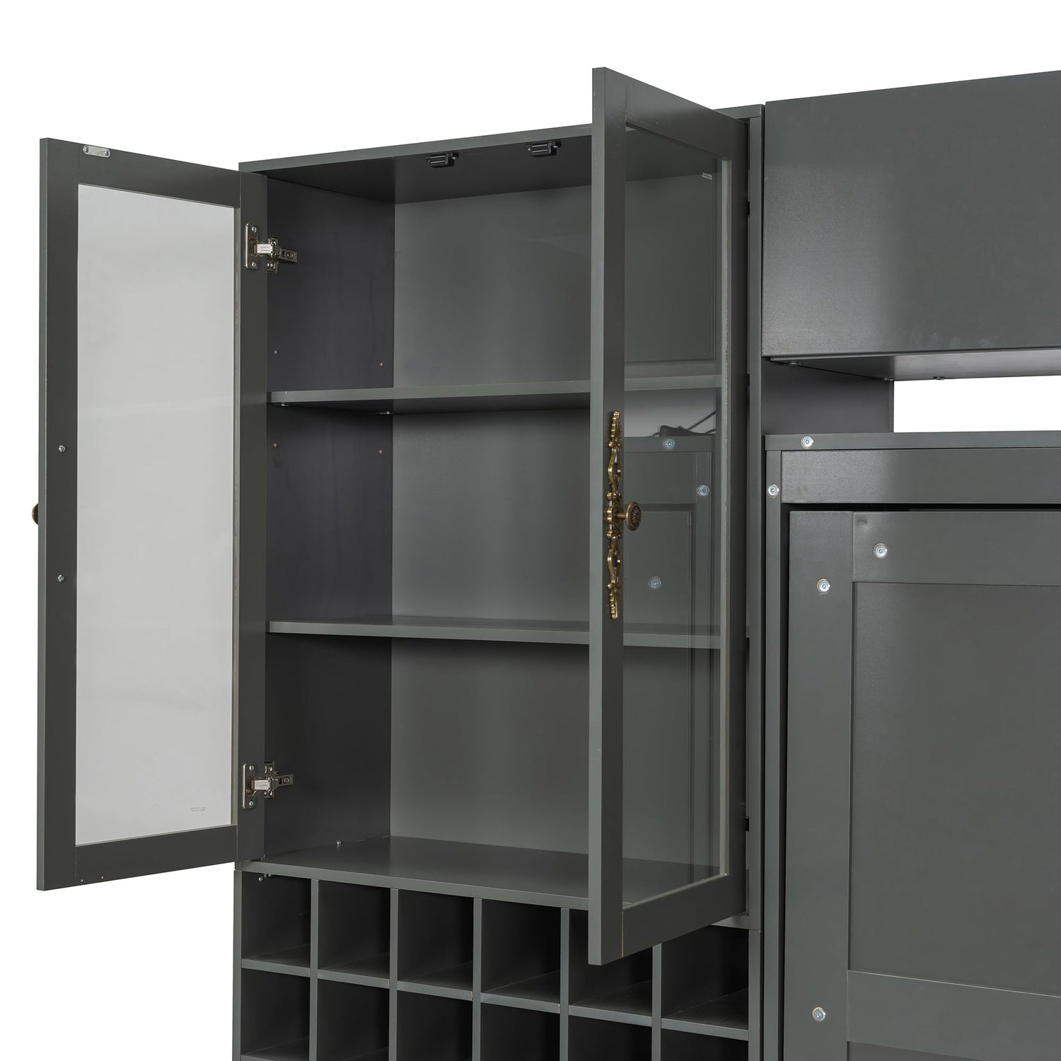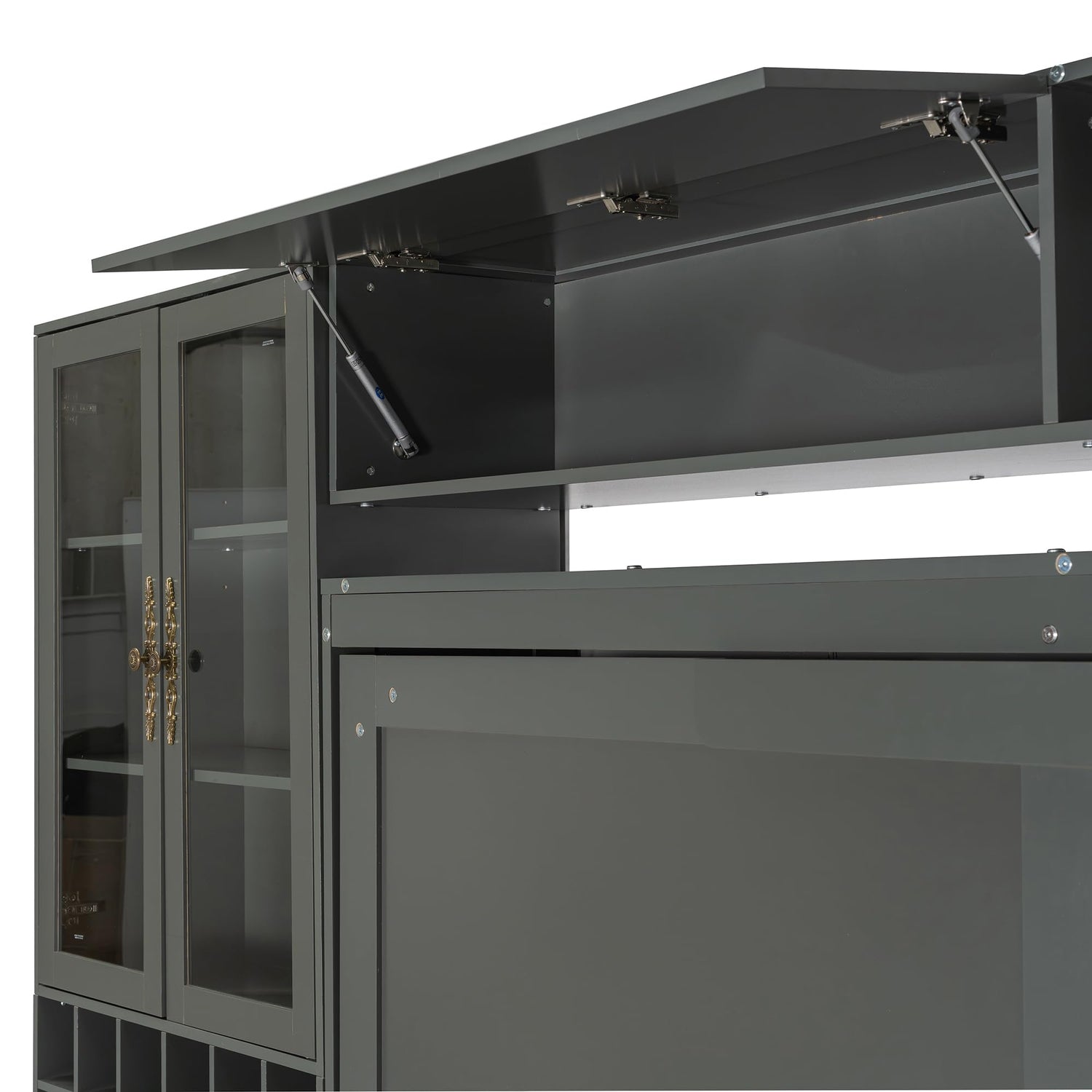 - 【Smart Storage Cabinet Design】The queen murphy bed cabinet features integrated wine storage, glass display cabinets and overhead compartments for organized living Retro-style handles add a touch of classic elegance to the contemporary unit