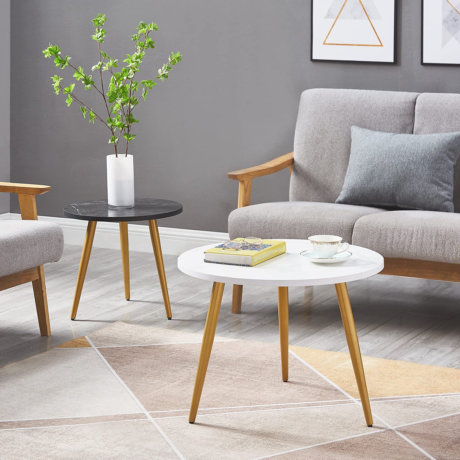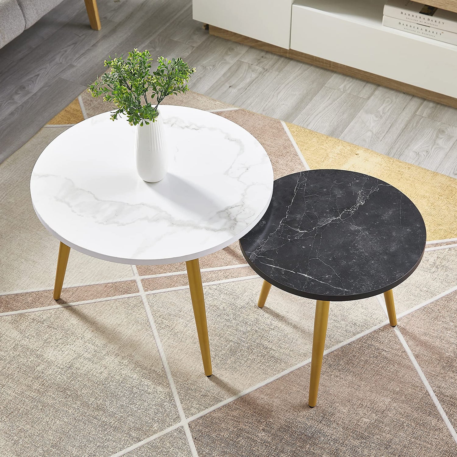 Details: Ball & Cast Modern Coffee Table Sofa Table Set , Faux Marble Side End Table Set with Metal Legs, Black&White