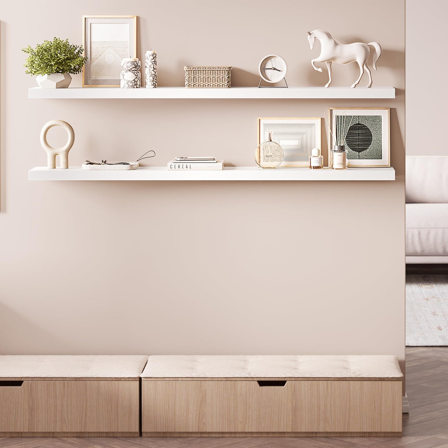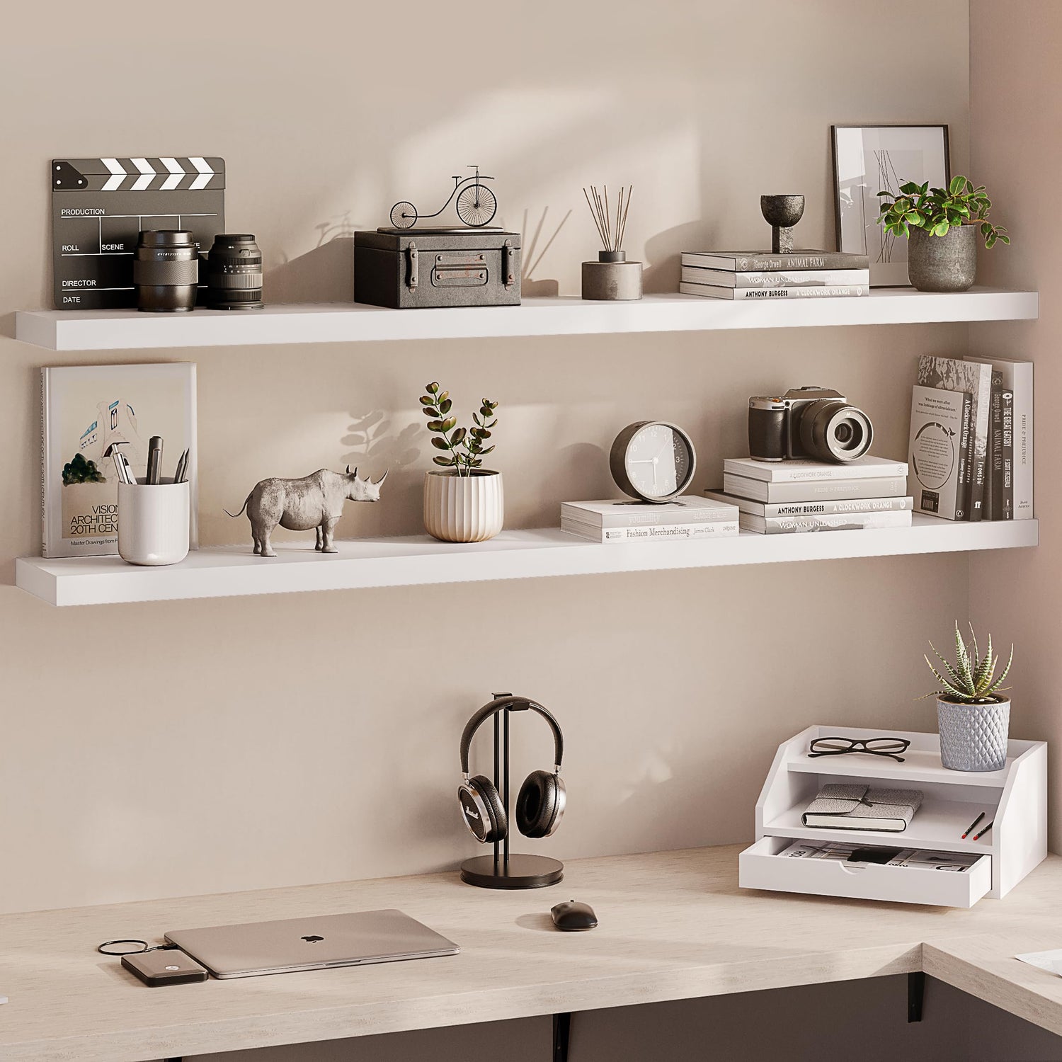 Ballucci Floating Shelves for Wall, 60" Wood Wall Shelf Set of 2, with Invisible Brackets for Bathroom, Living Room, Bedroom, Kitchen, Nursery, 8" Deep, White