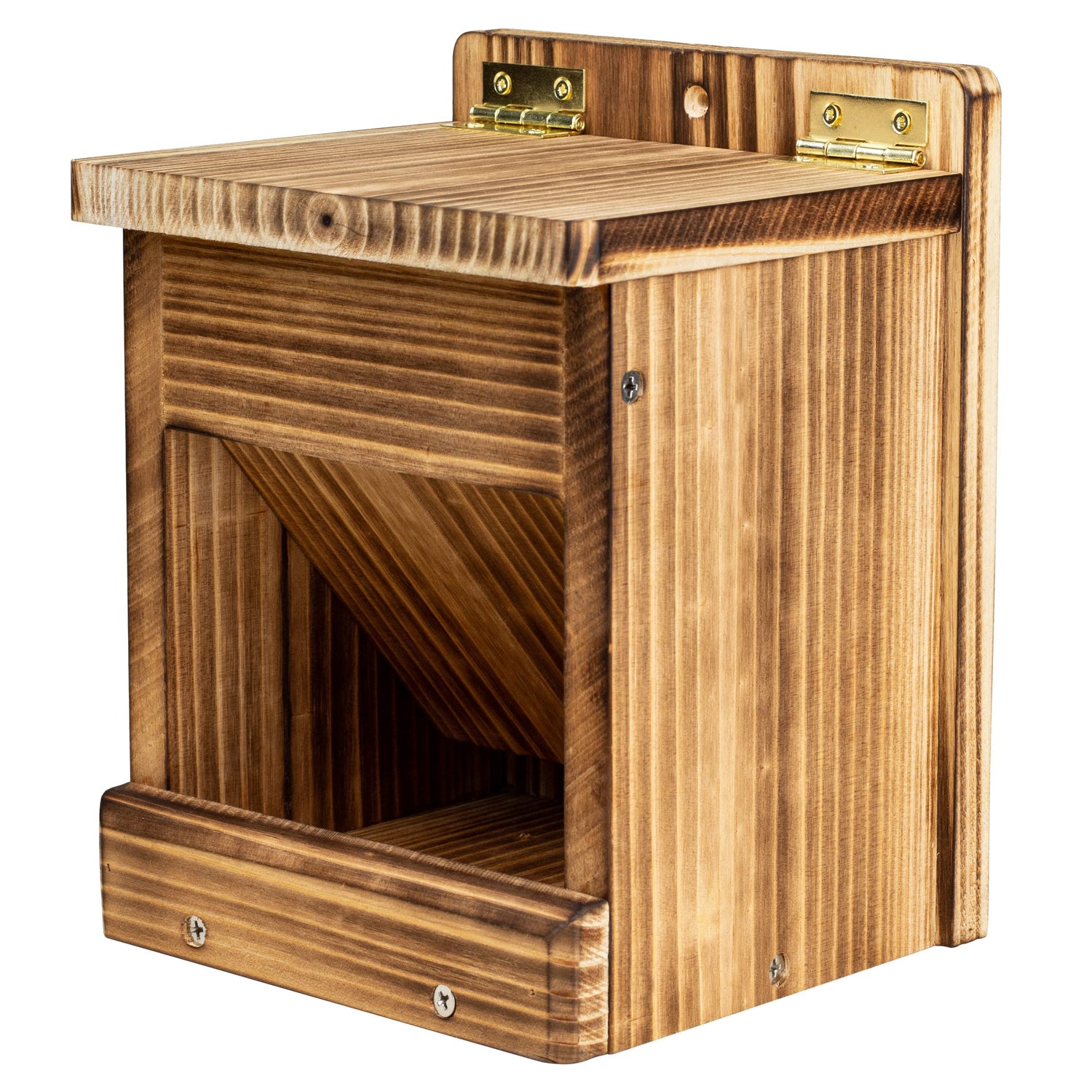 All handmade and solid wood design. It is durable, beautiful and practical, with movable cover. The bird food will automatically drop after being added,this can keep the food fresh and dry. With the movable cover, it is easier to clean and change bird food..