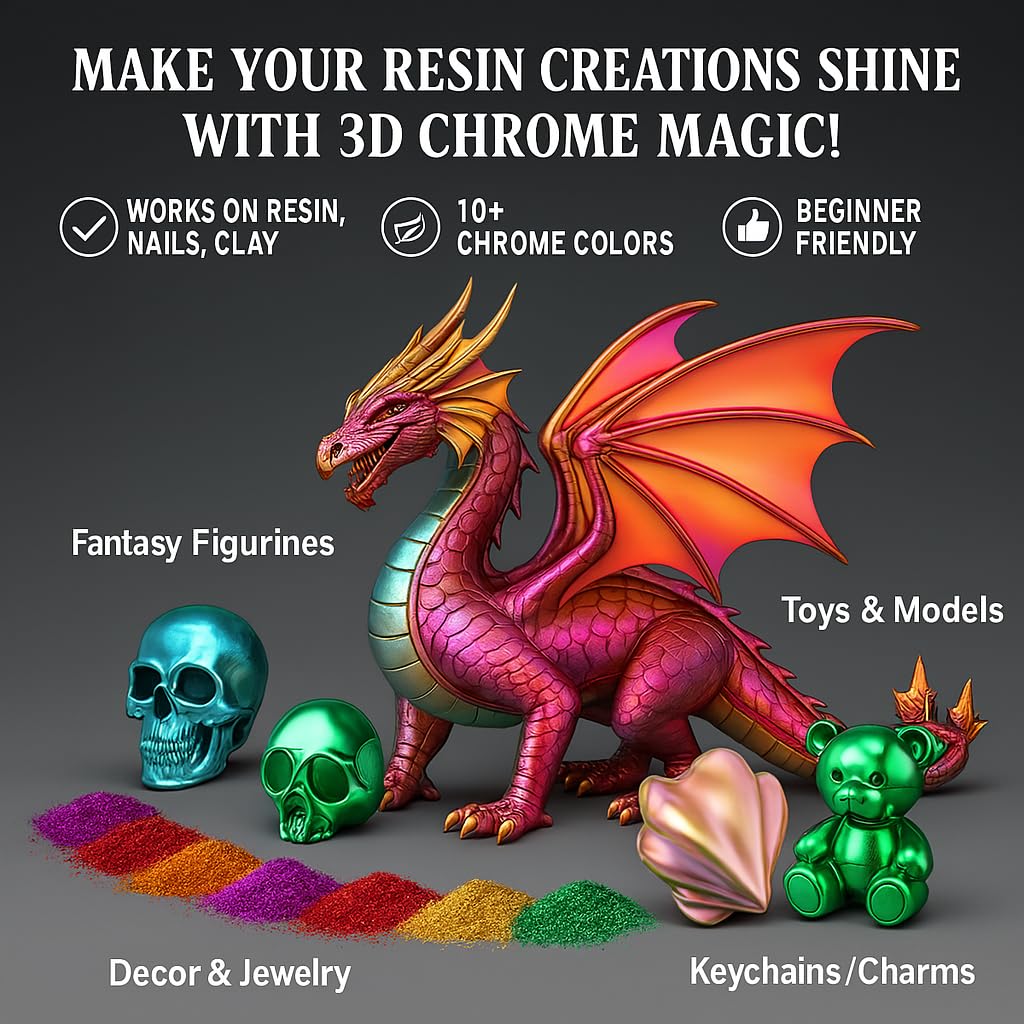 - ❤️ MIRROR CHROME FINISH FOR NAILS & RESIN - Create stunning nail art, tumblers, and resin crafts with 10 ultra-fine chrome powder jars. Rich pigment, smooth application, and fade-resistant color—perfect for beginners and pros.