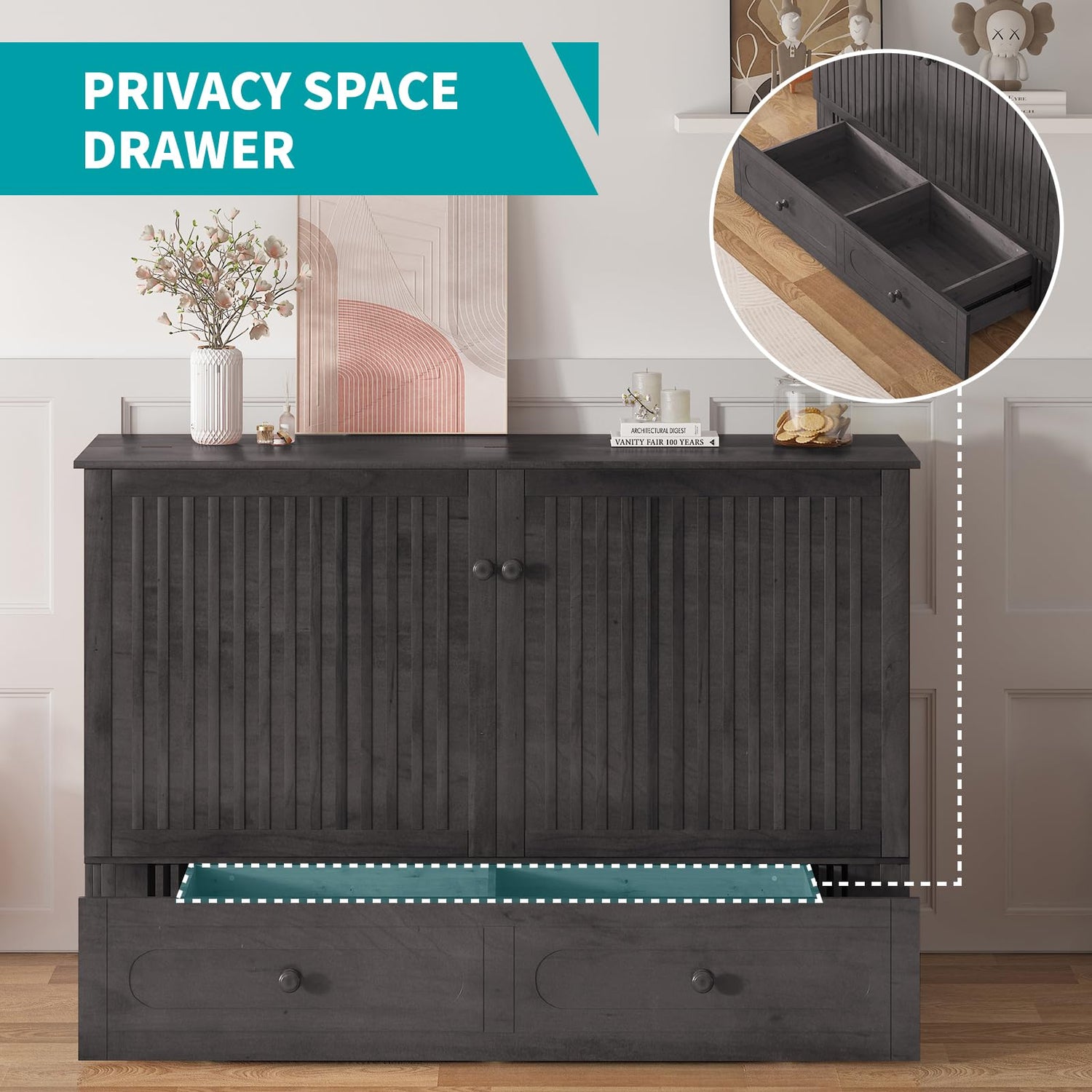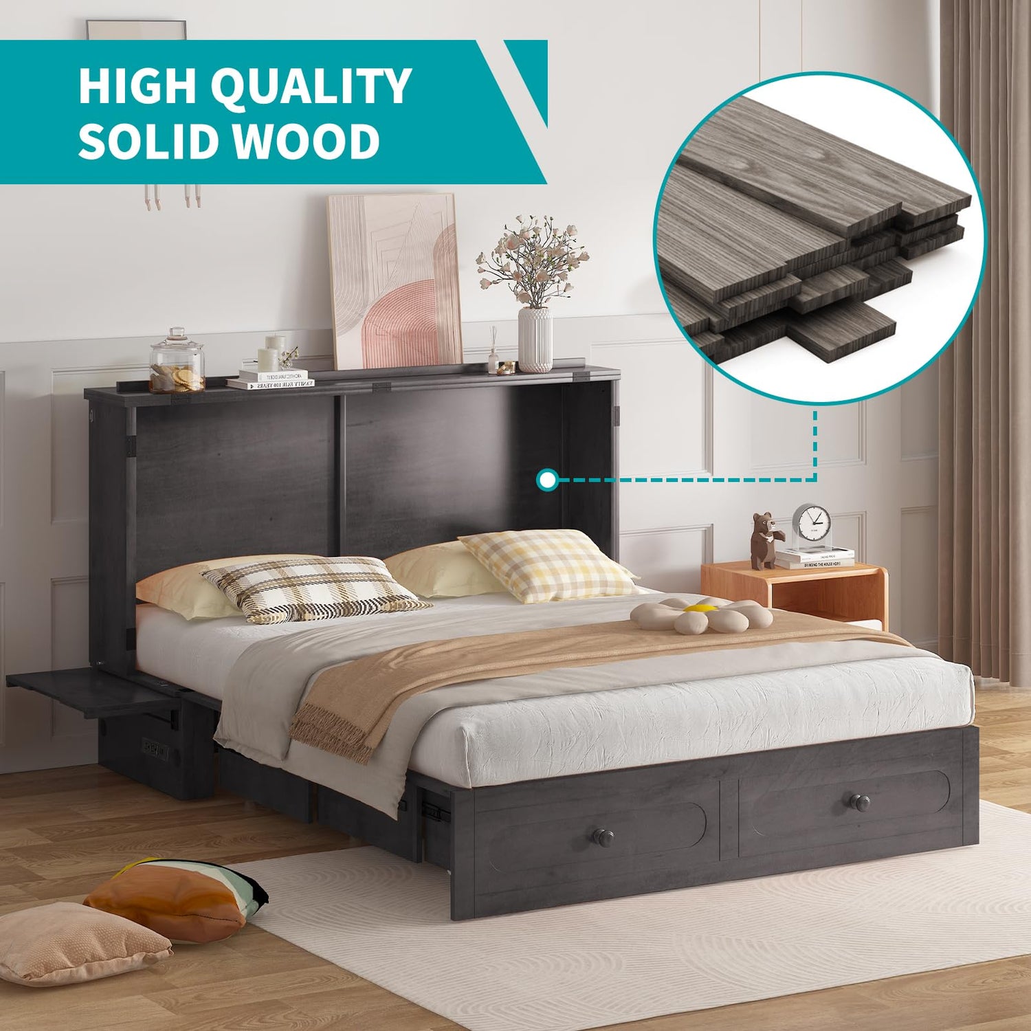 - ✅【Multi-Functional】 Queen Size Murphy Cabinet Bed with USB charging station, storage drawers for clothes, foldable tray table for easy access to daily needs, built-in charging station. There are 2 USB ports and 2 AC ports on the right side of the cabinet bed for easy charging of mobile phones and iPads.