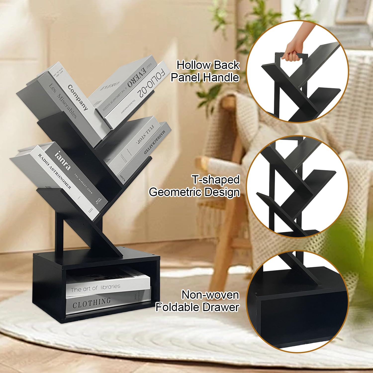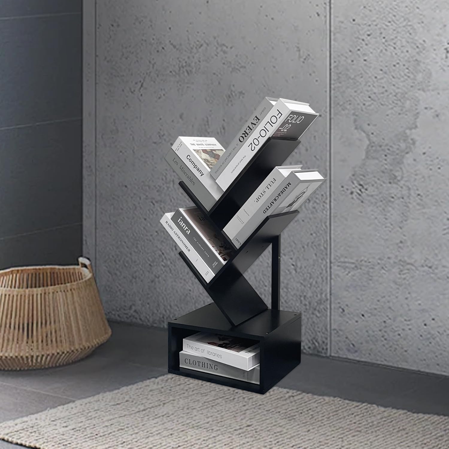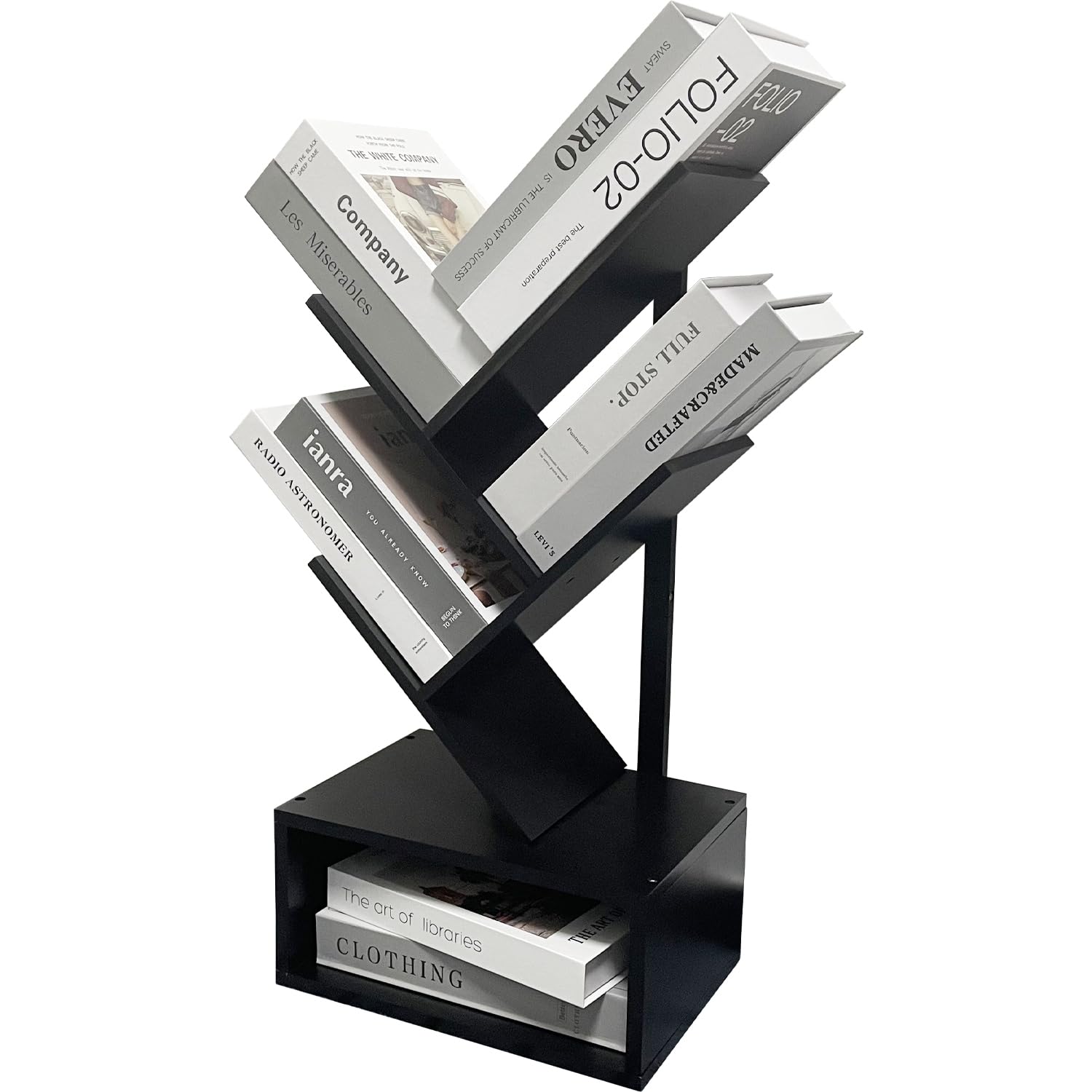 - Modern Design:The inspiration for this 4 tier small tree bookshelf comes from trees in nature. It adopts a unique tree structure, the multifunctional partition design of the book case is perfect for displaying your books, CDs, magazines, video games, manga, decorations, novels, speakers and more. Available in a variety of colors, this storage rack is applied to any style of home decor.