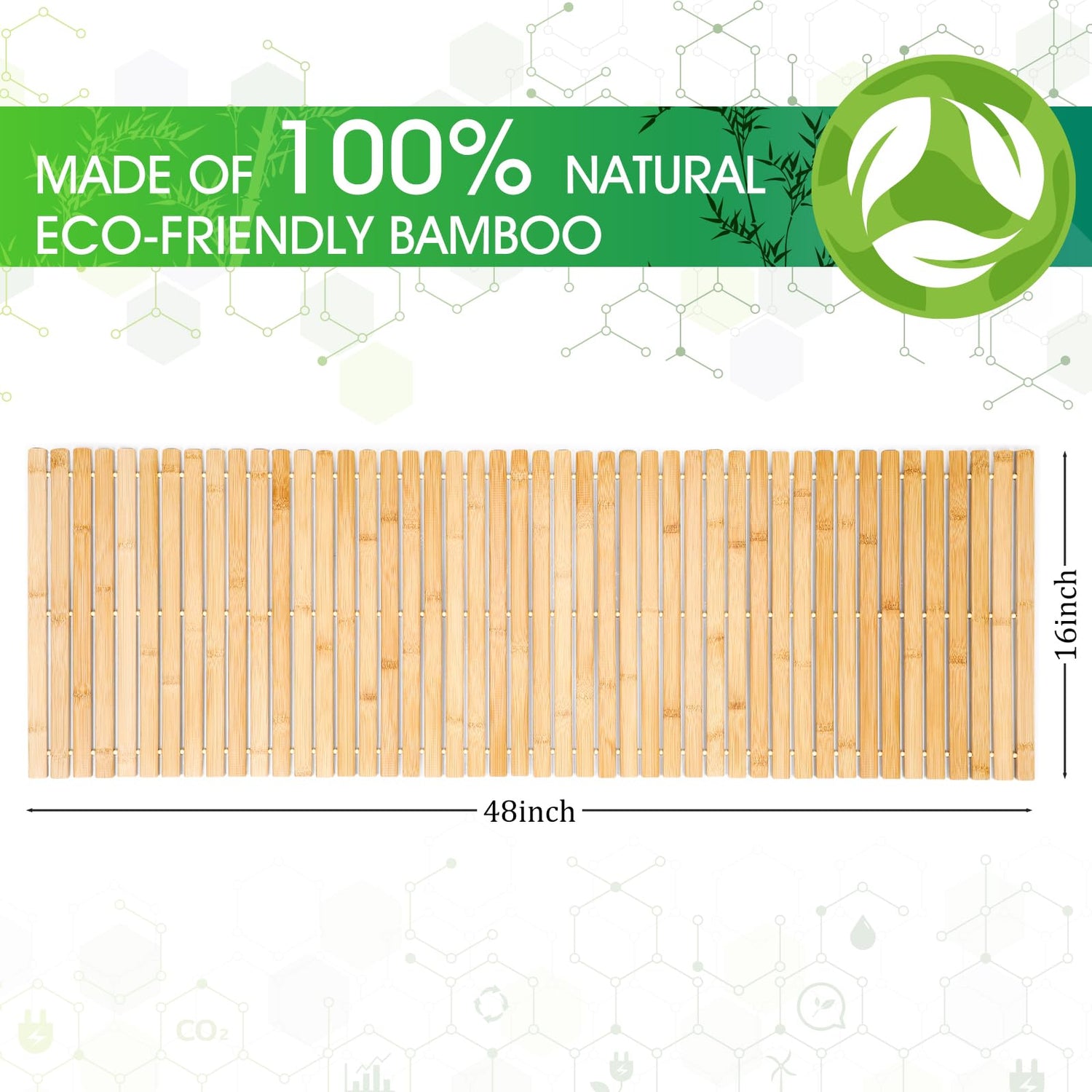 - Ideal Bathroom Decor :Our large non slip bamboo mat measure 16 x 48 inch,the size is long enough to meet your different decoration needs.Great for pool area,tub steps,spa room,bathroom, kitchen, bedroom etc. and can easily be rolled up or folded for storage.