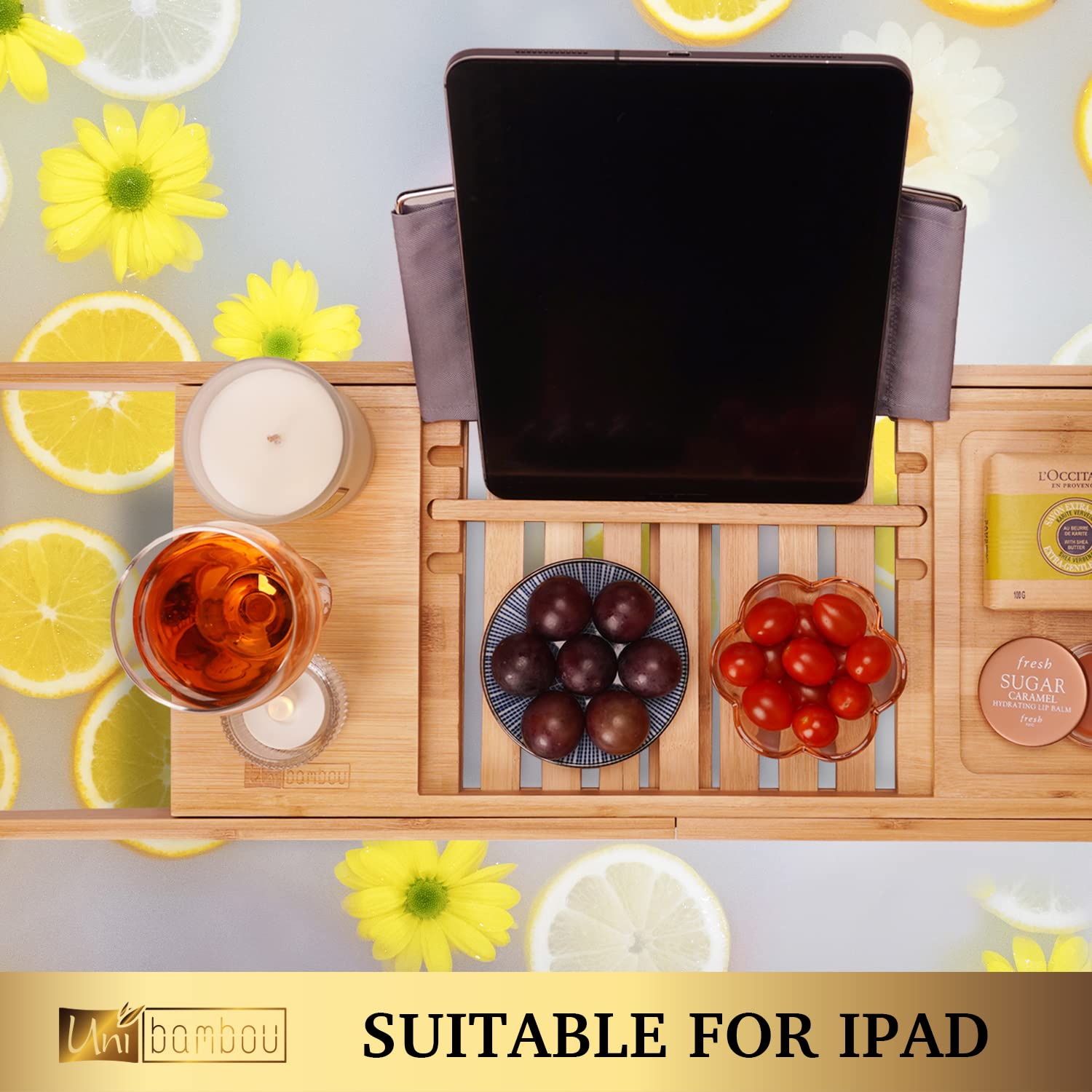 Bamboo Bathtub Caddy Tray for Luxury Bath, Expandable Bath Tray for Tub with Book and Wine Holder- Gift Idea for Loved Ones