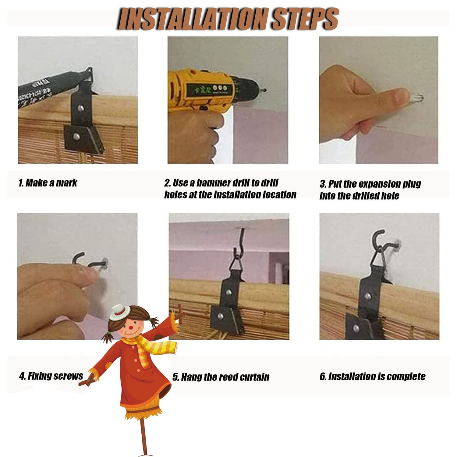 - [Easy to Install] The blinds roll up shades come with hooks and lifters, the drawstring design is easy to use, and the included hooks are easy to install, perfect for home and garden use. Reed curtains can be used with dry or wet cloths. Beautiful and durable, can be used for a long time.