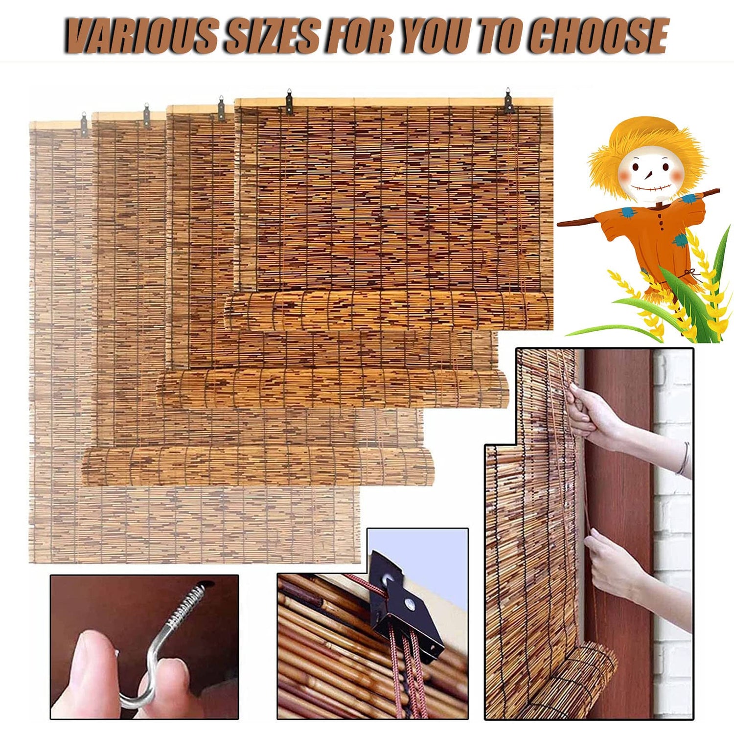 - [Customize Instructions] Our bamboo shades blinds provide enough sizes for you to choose, If your reed shades bamboo roller blinds are standard size, you can order directly from our size list. If you need other sizes, please order the closest size and send us the size you want. We will adjust the size. (Size list is sorted by width x height)