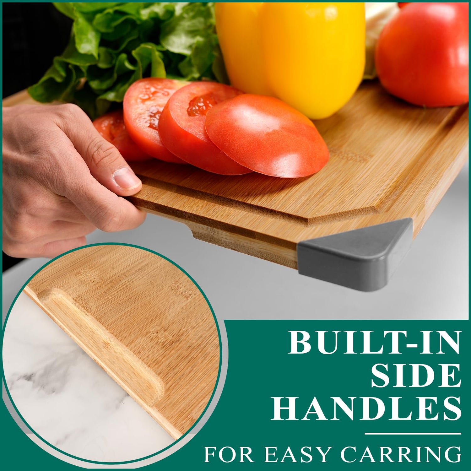 - 【UNFORGETTABLE GIFT】This bamboo cutting board is a great gift choice, whether as a housewarming gift, wedding gift, Christmas, Mother's Day, Father's Day, or even a birthday gift, it will be highly appreciated by friends and family.