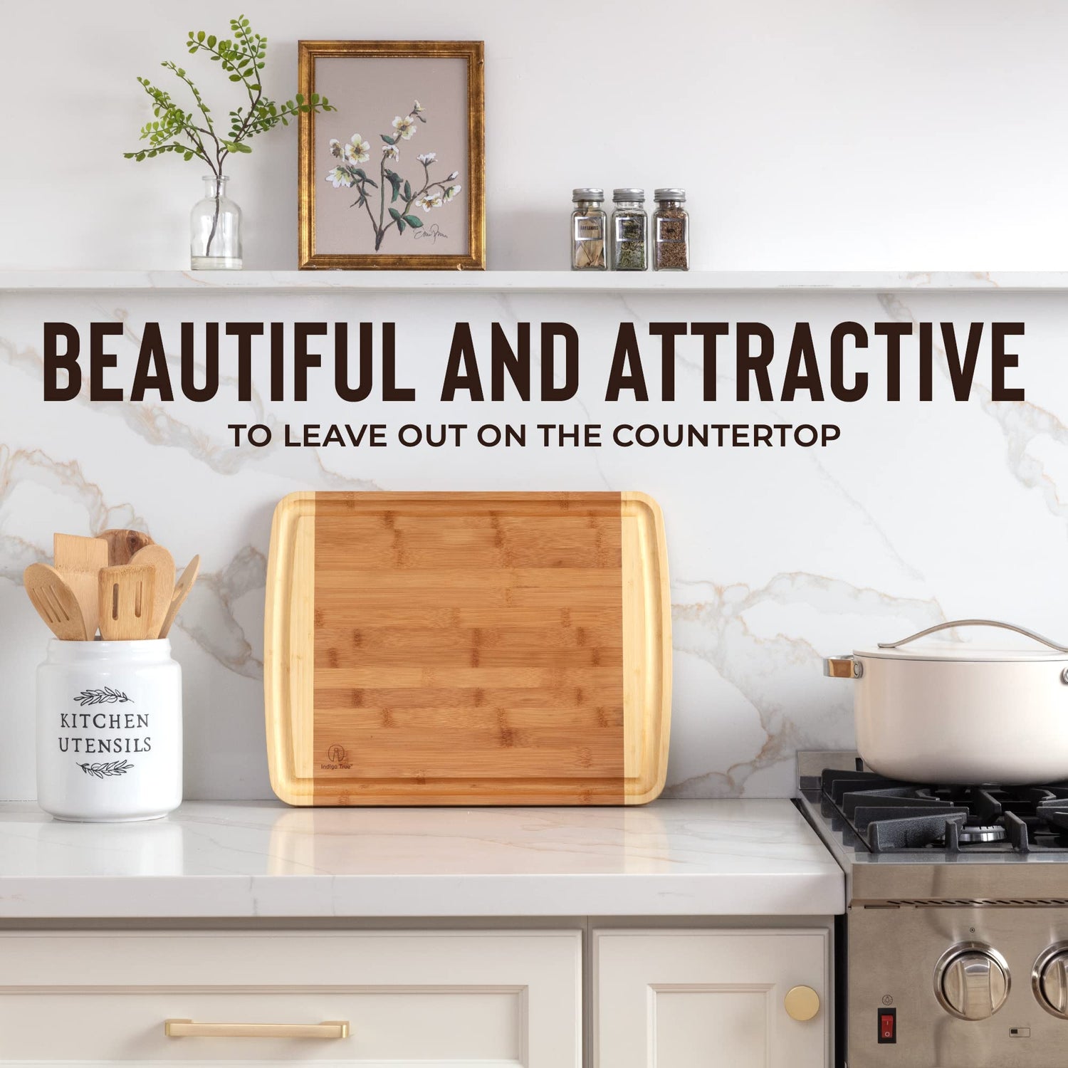 - MESS-FREE! Our extra large cutting board with juice well catches more liquid than other bamboo cutting board set & prevents the juices from spilling all over your counter. Our bamboo cutting boards for kitchen is best for SERVING & CARVING food prep.