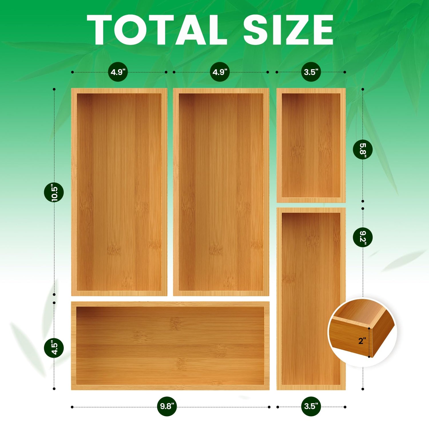 - 5-Piece Bamboo Drawer Organizer:Ideal deep drawer organizers for everyday use, these organizers are both beautiful and functional, perfect for home, kitchen, bathroom, office, drawer, stationery and utensil organization. The organizers are easy to put in and take out of any drawer and can also be used to organize countertop items!