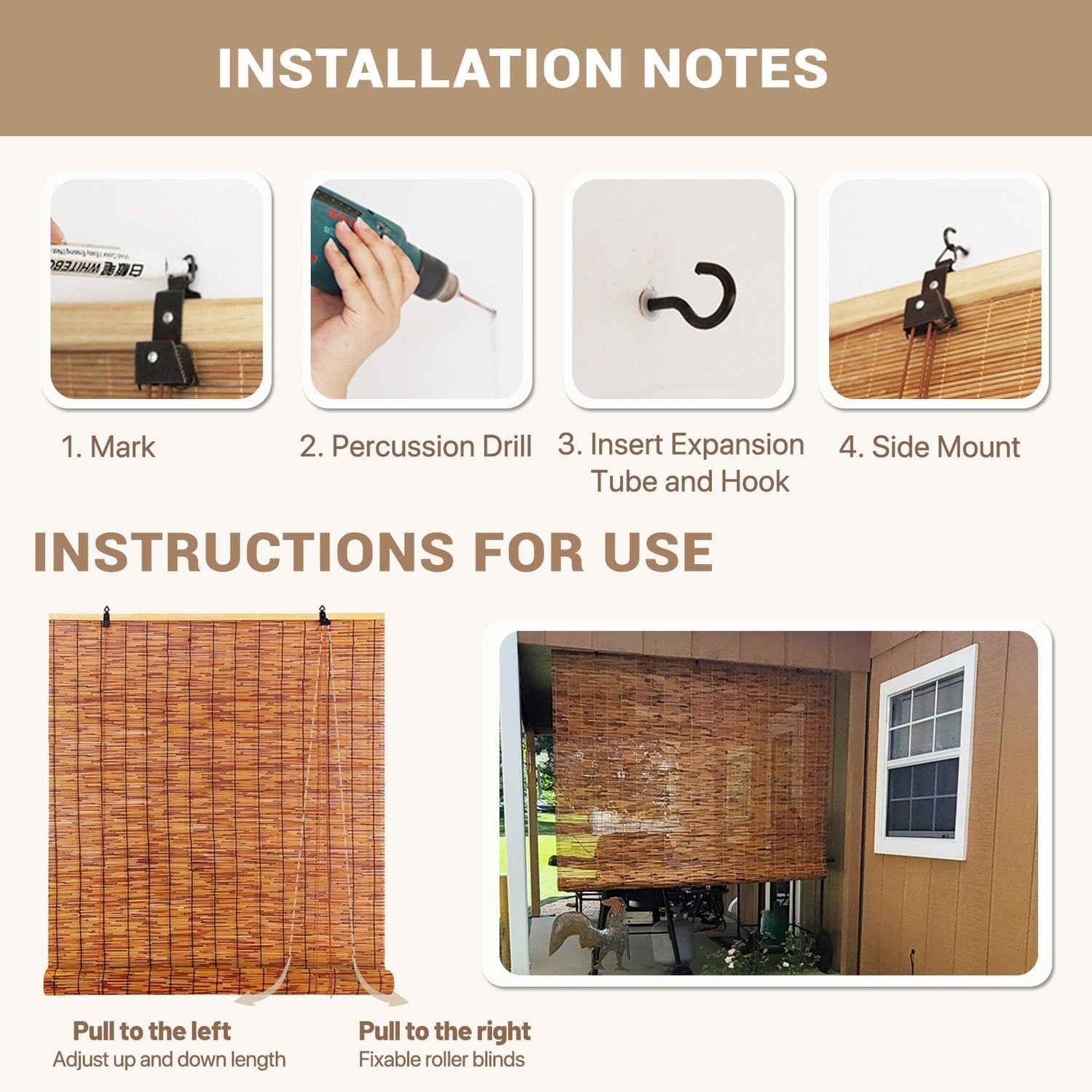 - 🍂【Wide application】: Beautiful patio blinds can be installed on windows/doors/balconies/porches. It can be used as curtain/ceiling/partition/fence. It is suitable for any place where you want to decorate and protect from the sun. Suitable for hotel/office/restaurant/resort/patio/pergola/garden etc.