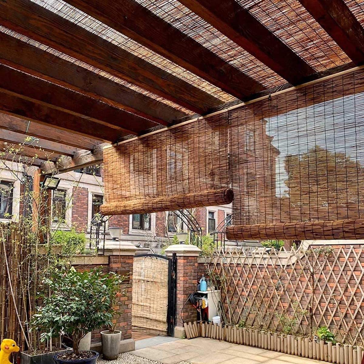Bamboo Shades Patio Blinds 72" 64" 84" Bamboo Blinds Roll-Up Lifting Window Roman Shade(Size:48'' x 84''-(W x H))