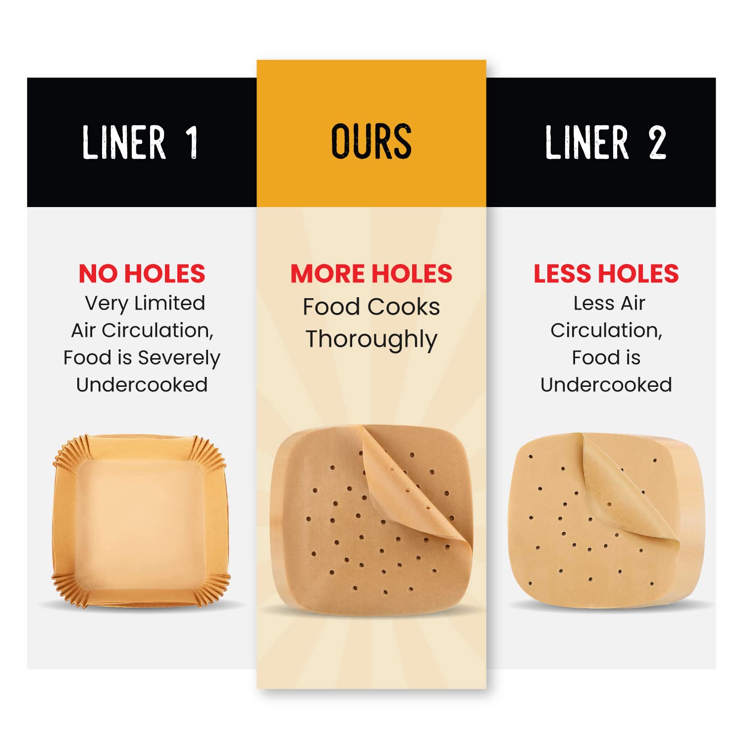 • COMPATIBLE WITH MOST AIRFRYERS – Our liners are compatible with most airfryers including Phillips, Cozyna, Secura, NuWave, Chefman, GoWISE USA, BLACK+DECKER, COSORI. Made from 100% natural wood pulp, our parchment liners are a much healthier alternative to Quilon sheets. Quilon contains a chemical called Chromium that can be harmful once ingested. Baker’s Signature sheets are also not chemically bleached like other brands.
