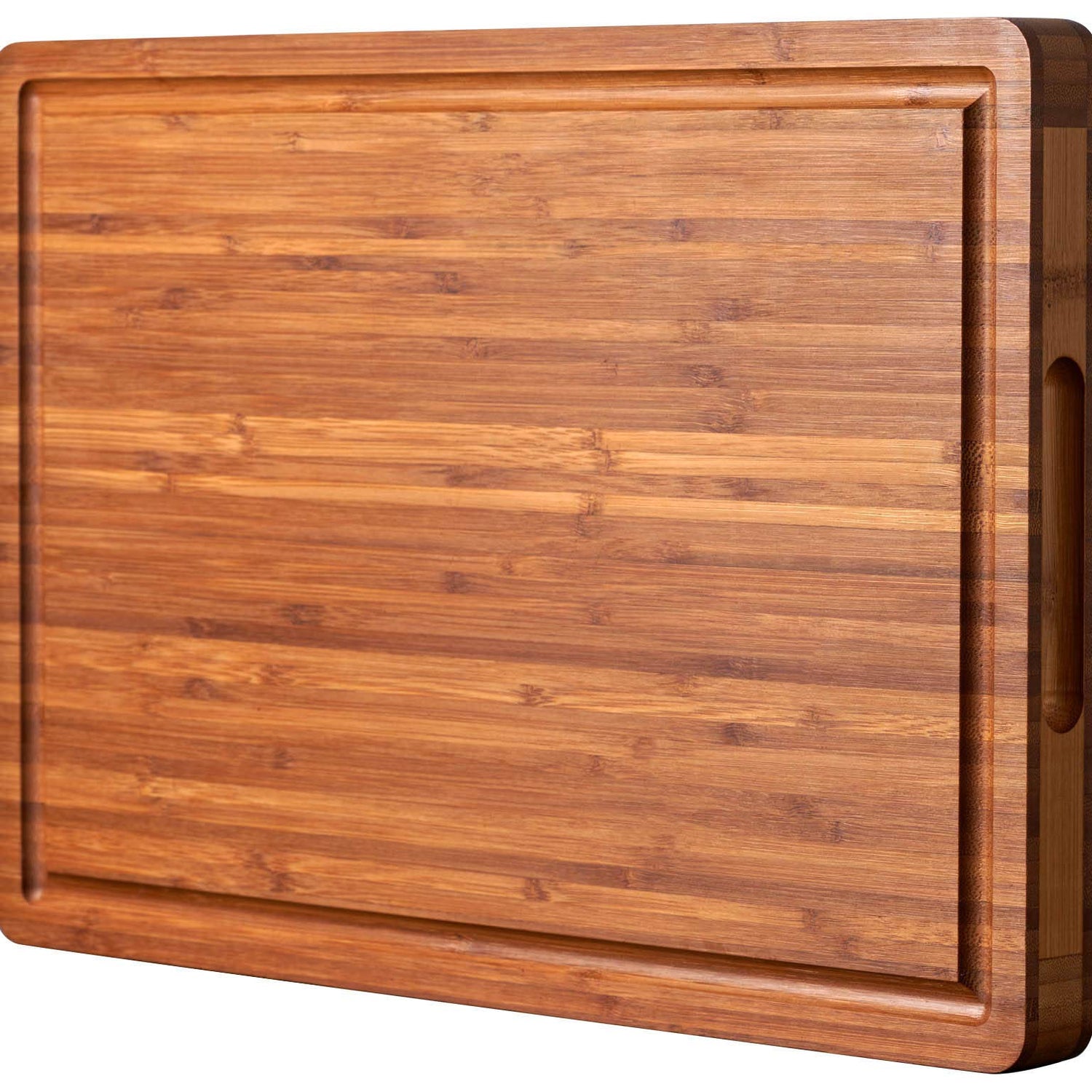 - Strong and durable cutting board: Made of premium organic bamboo. 1" thick, resist to heavy-duty carving, chopping, could serve as a butcher block which lasts for years.