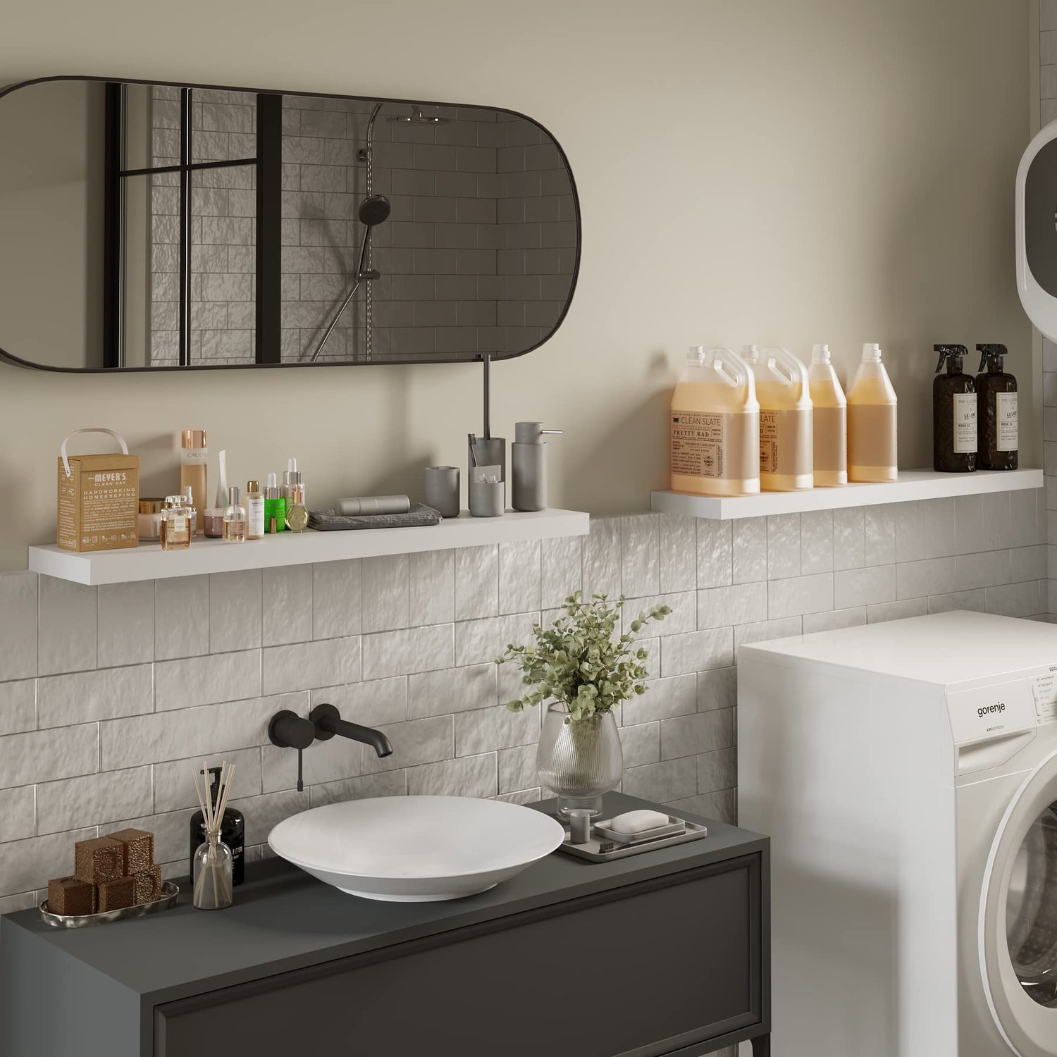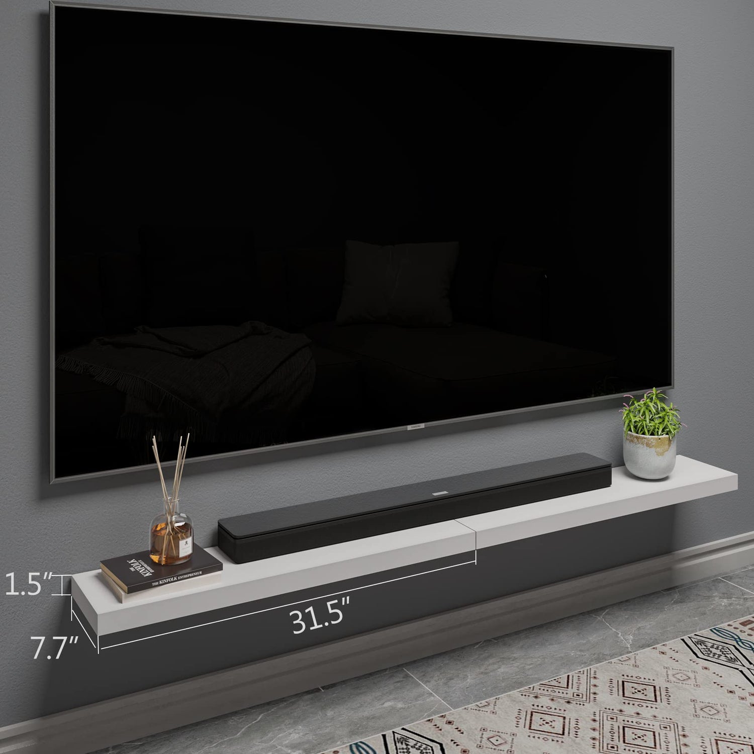 - WIDE SHELF BOARDS: The Bameos White Wall Shelf will maximize space without taking up any square feet - each board measures 31.5” W x 7.7” D x 1.5” H; Reduce clutter and highlight decor in a compact space - giving the illusion of more space in your studio apartment, dorm room or small living area and so on
