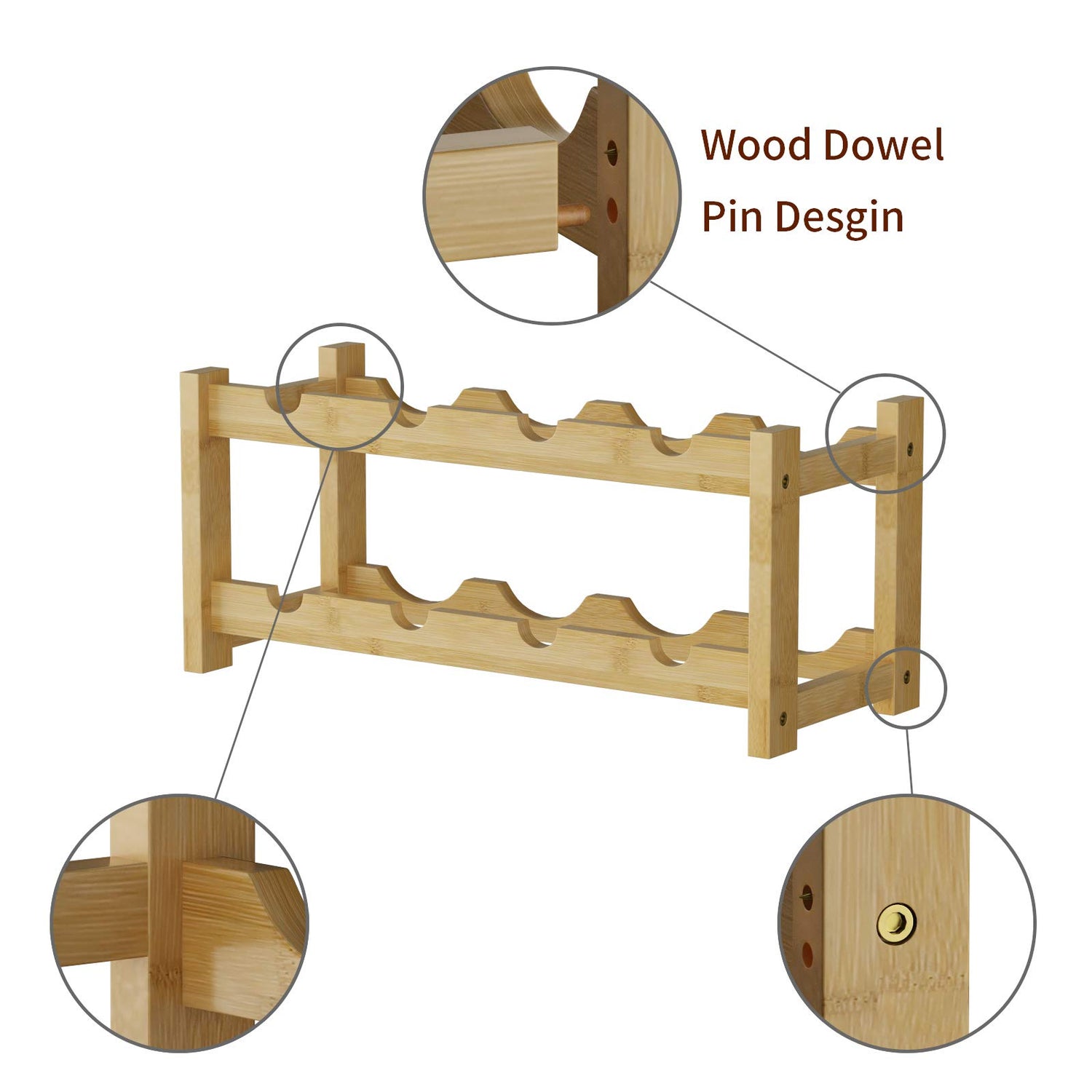 - 【Sturdy and Smart Design 】 Wine bottle holder made of high quality bamboo wood with smooth finish. Clever design and sturdy construction of wine holders stands prevents wobbling, tilting or falling. Wine rack free standing keeps bottles absolutely safe.