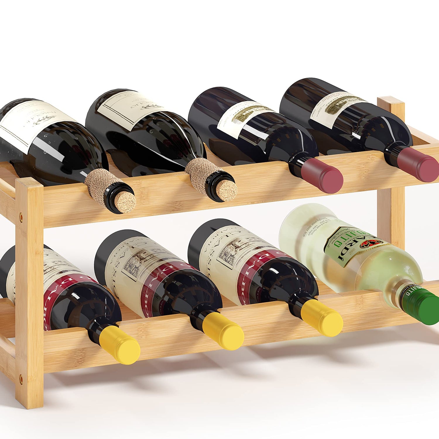 BAMEOS Wine Rack Free Standing 8 Bottle 2 Tier Bamboo Wine Racks Countertop Cabinet Wine Holder Wine Storage Shelf for Kitchen, Bar, Pantry, Wine Cellar, Basement, Countertop (16.85 L x 9.25W x 7H)