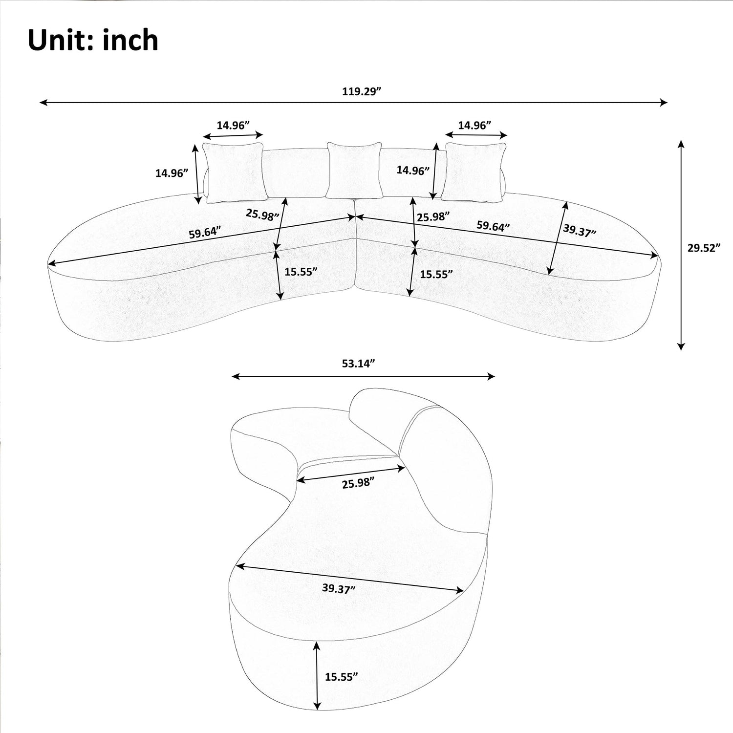 - 【Oversized】BAMOOLI curved sectional couches for living room is designed to provide a cozy atmosphere for your family. DIMENSIONS: 119.29''L*53.14''W*29.52''H. With its spacious size, 5 seats making it perfect for families. This modern couch allows for closer communication among family members. Additionally, the generous depth of large sectional couch ensures that even taller or larger individuals can fully stretch out and unwind.