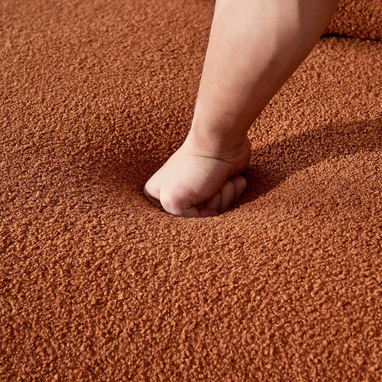 BAMOOLI 119'' Curved Sofa Couch, Mid Century Modern Half Moon Living Room Sofa, Luxury 4-Seat Sofa Couch with High-Density Foam Filled, Sherpa Lamb Fabric Sectional Sofa for Apartment, Office, Orange