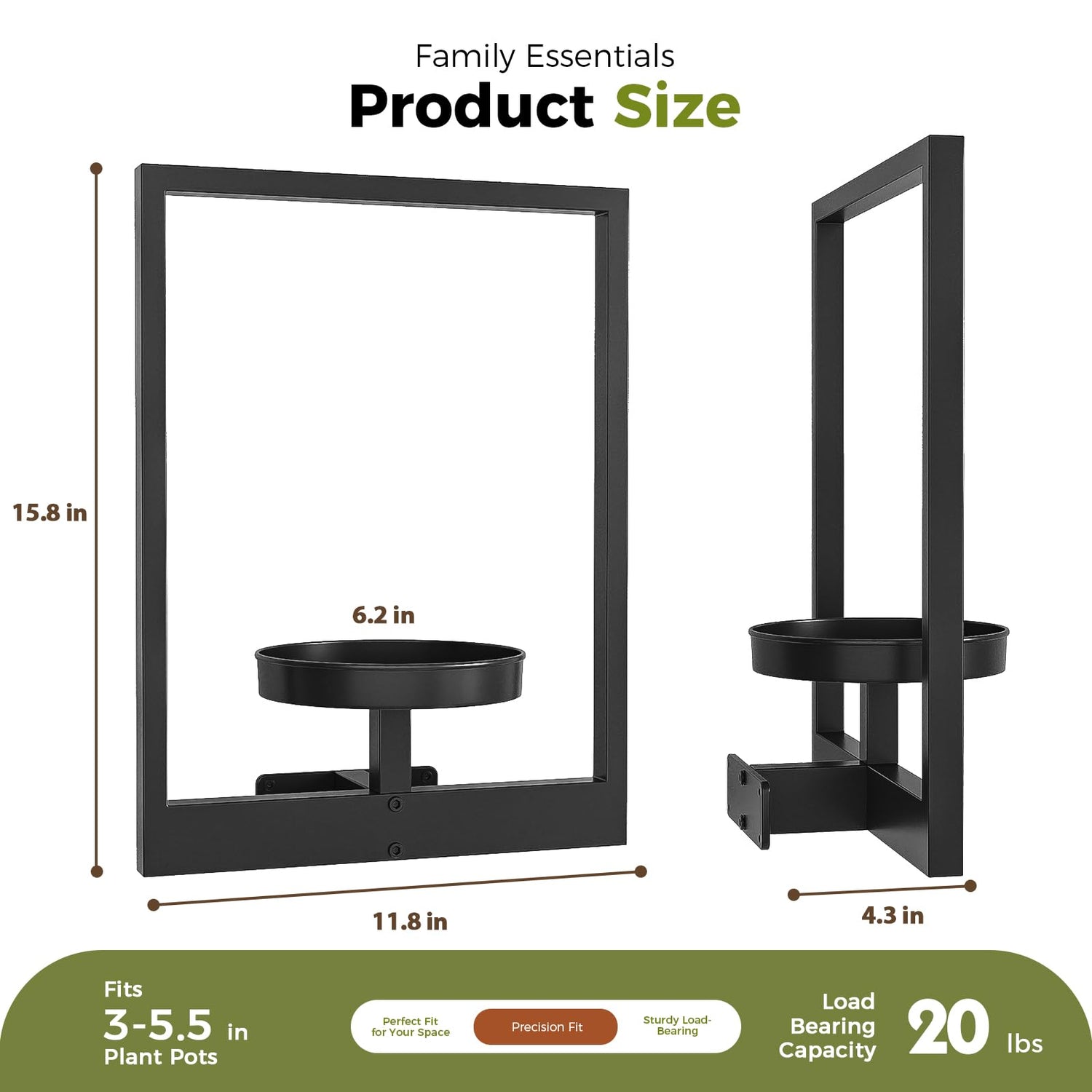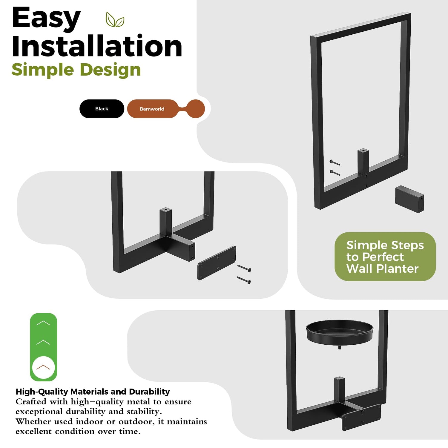 Bamworld Wall Planters for Indoor Plants Metal Wall Plant Holder Plant Hanger Wall Decor Wall-Mounted Wall Hanging Planters Outdoor Plant Rack Black 2 Pack (Patent Design)
