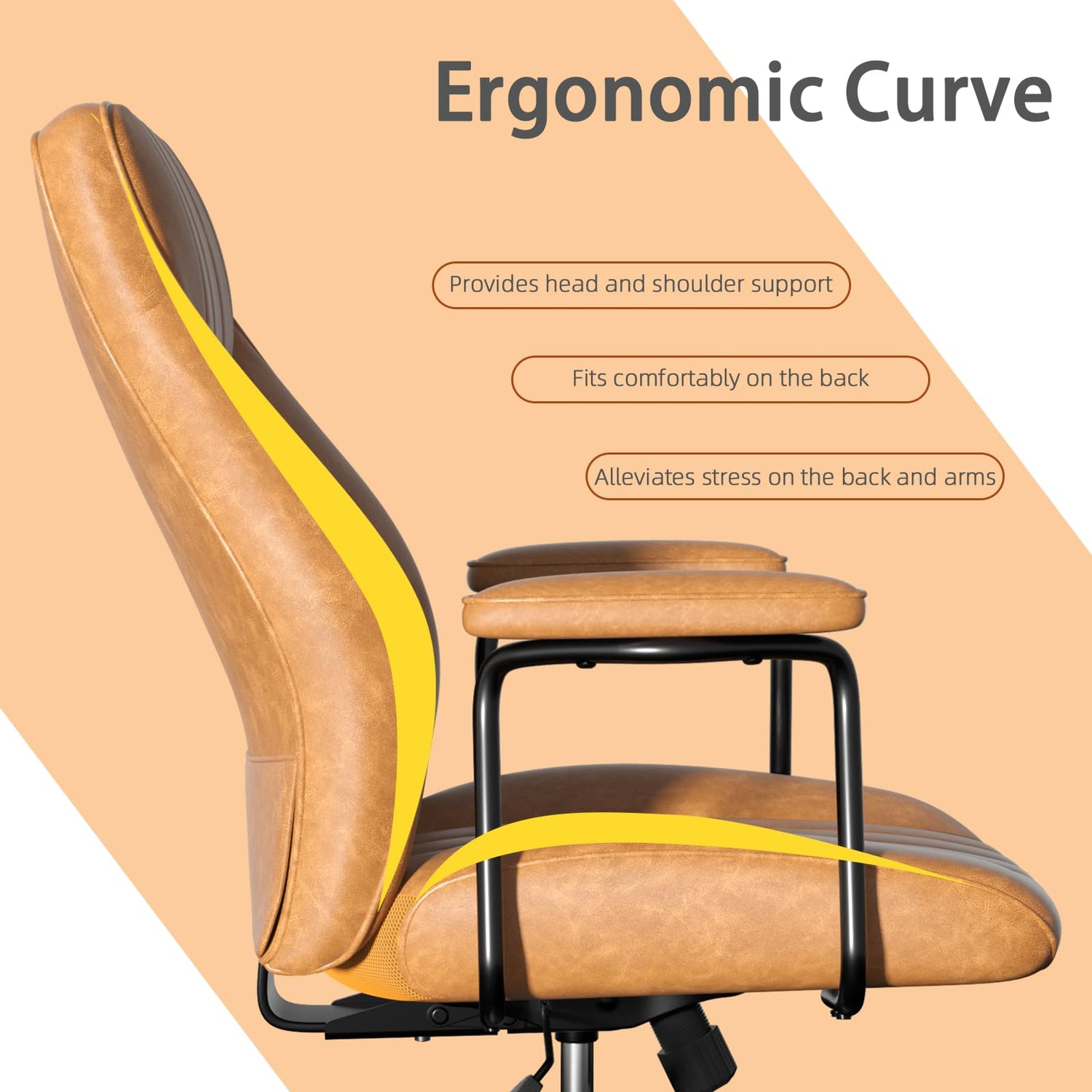 - Thoughtful Design: The brown leather office chair features breathable mesh at the seat and backrest junction, reducing friction noise and protecting the fabric. It ensures quiet, smooth operation whether moving or reclining up to 140°, adding comfort and style to your workspace