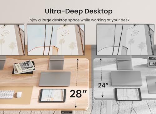 BANTI 63 × 28 Inches Standing Desk, Ergonomic, Electric Height Adjustable, Sit and Stand Up, Computer Desk with a Deeper Desktop, White Frame/Maple Top