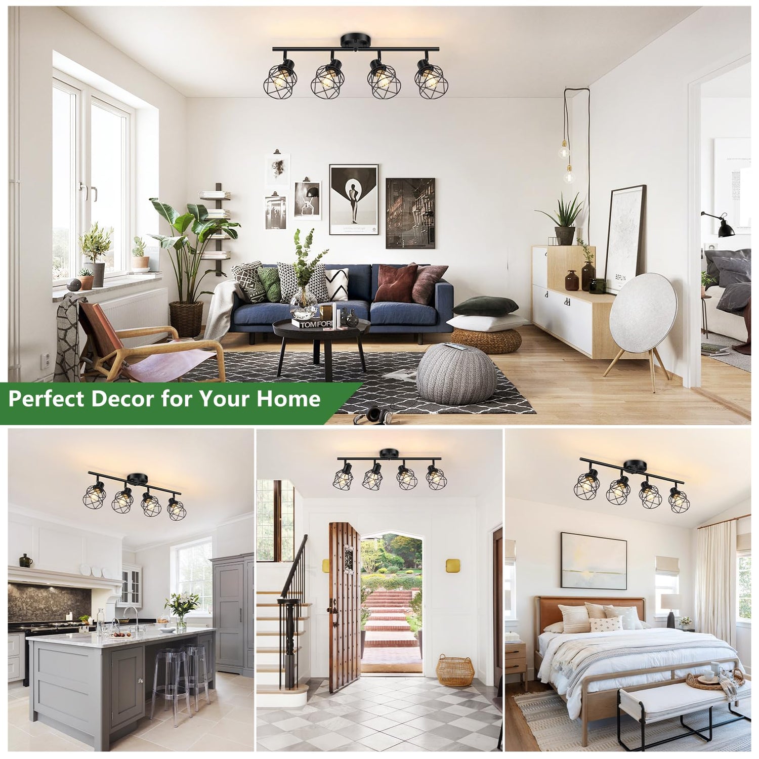 - 【Unique Farmhouse Light Fixtures】Baocuz 4-light multi-directional ceiling light is made of sturdy metal in matte black finish and wire cage, which is anti-rust and corrosion, super easy to clean, simple but sleek. Ideal ceiling lighting for indoors as a kitchen lights, hallway lights, living room lights, exhibition lights, dining table lights, bedroom lights, foyer lights, etc.