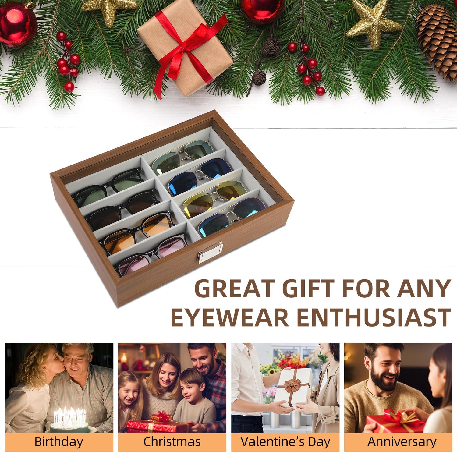 - Thoughtful Gift Idea: Searching for the perfect gift? Look no further. Our 8 slot sunglasses organizer box combines functionality with aesthetics, making it an excellent gift choice for friends, family, or anyone who appreciates a well-organized and stylish accessory collection. Make every eyewear enthusiast's day with this practical and chic solution.