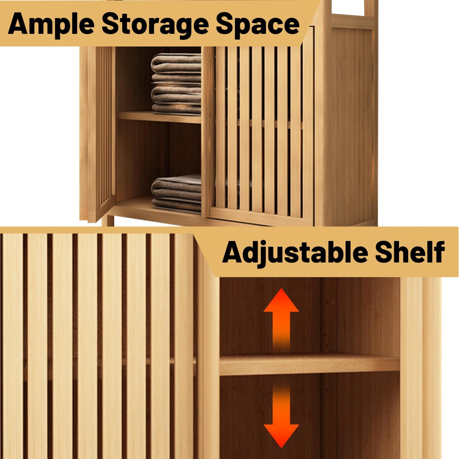 BAOMKONG Versatile Bamboo Storage Cabinet with Louvered Doors & Open Shelf - Ideal for Bathroom, Living Room, or Entryway