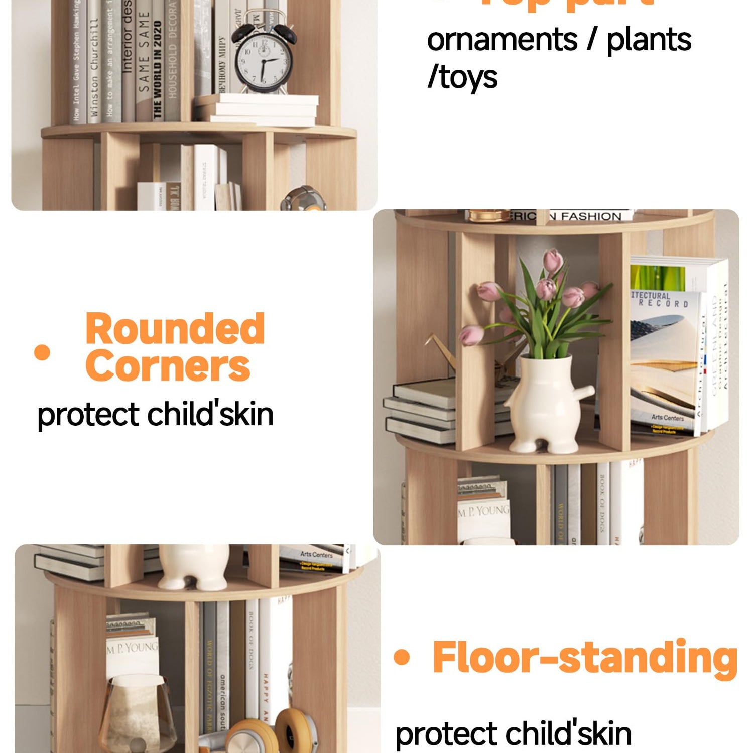 - 【Eco-Friendly and Easy to Clean】The rotating storage book shelves tower is made of high-quality eco-friendly wood, and every inch of the kids rotating bookshelf material has been carefully polished, bringing you both visual and tactile experience. Not only scratch-resistant, corrosion-resistant, but also waterproof and easy to clean