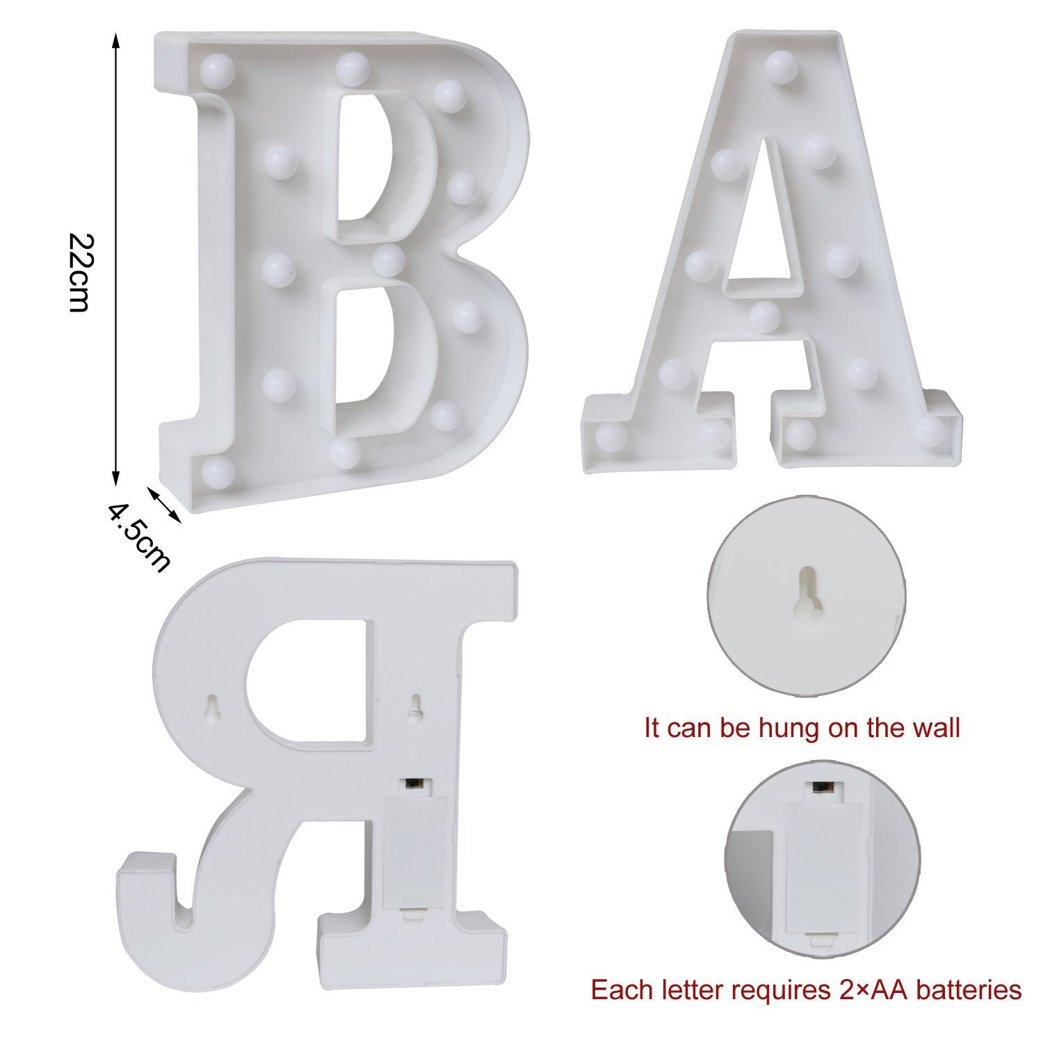 • Each letter operated by 2AA batteries(not included). Features total 38 warm LED lights that shine brightly, making this a festive addition to a commercial or home bar.