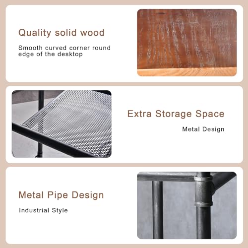 LOKKHAN Industrial Vintage Bar Height Table with Extra Shelf - Rustic Brown & Grey Metal Console for Kitchen, Dining & Pub