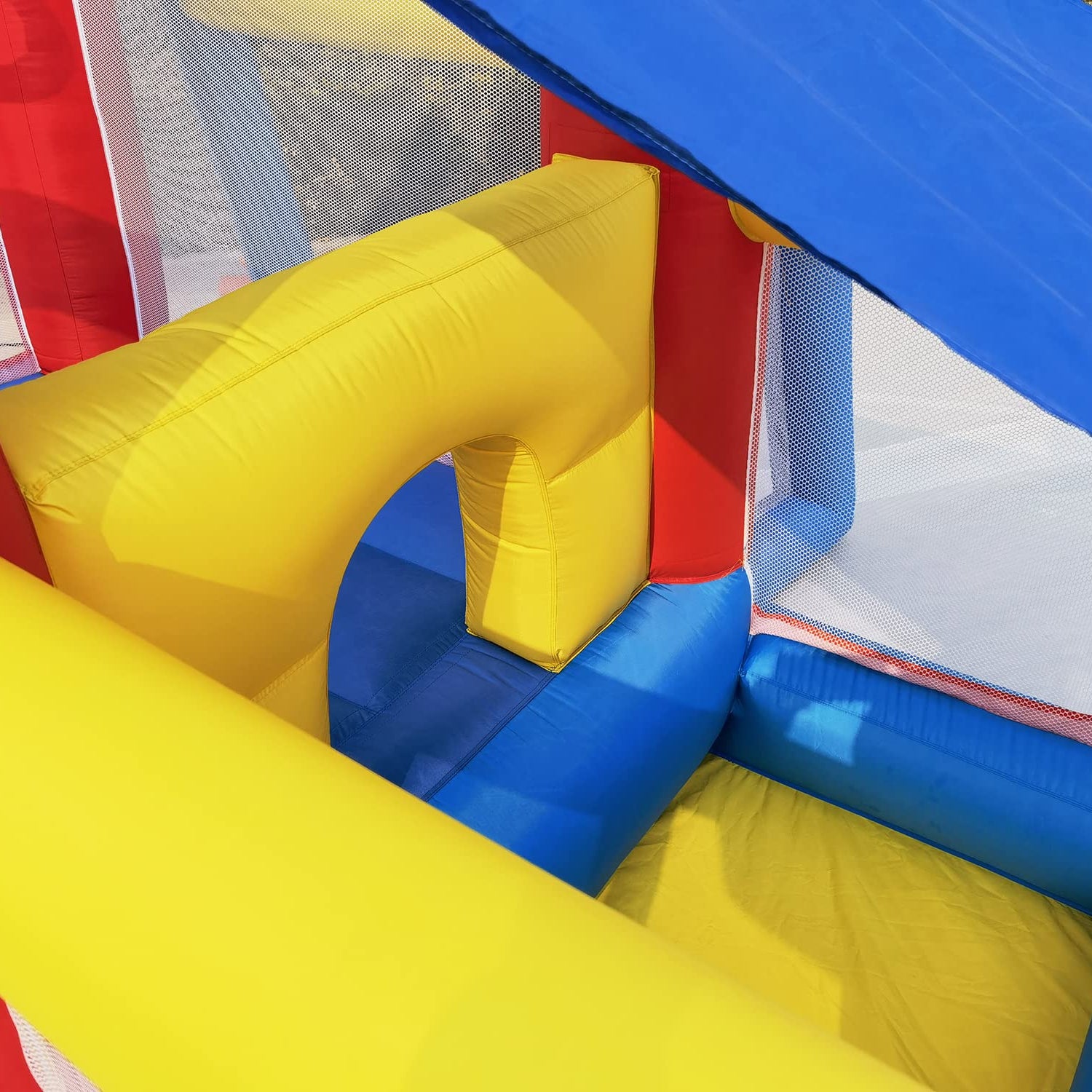 - All In One Box: you will receive a box with folded bouncy house and blower and other accessories all in one box. The whole set pack small at dimensions of 22"*15"*15" , can easily put in the trunk and use at the next best friend's birthday party.