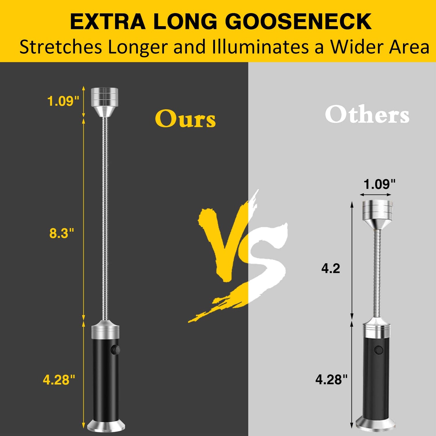 - Extra-Long & 360° Adjustable Gooseneck - The gooseneck of this bbq light is adjustable 360 degrees, and you can adjust it to any angle you want. Just all for your convenience. At the same time, we lengthened the gooseneck of the grilling light to 8.3'', twice as long as the old version, so that you can adjust a broader range.