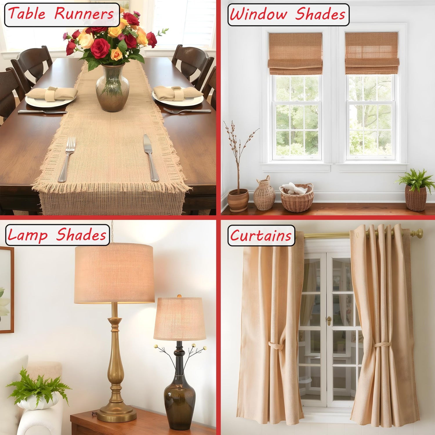 - NATURAL BURLAP FABRIC FOR HOME AND EVENTS - Crafted from 100% jute, this burlap fabric combines sustainability with a classic look. Perfect for creating custom table runners, banners, and rustic accents for weddings and events. This jute fabric is easy to cut and sew, ensuring a seamless experience for crafting, decorating, and creating timeless designs with burlap fabric.