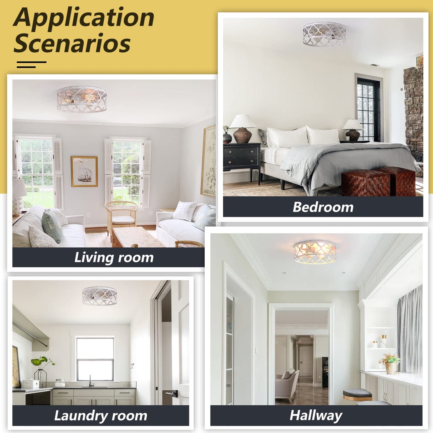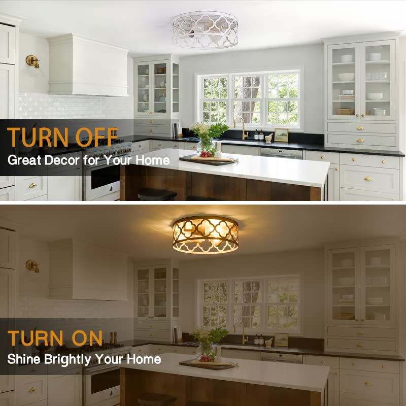 - THE BEST CHOICE:Ceiling light fixtures should enhance the atmosphere of your space,not take away from it use kitchen lights ceiling add illumination.The bulb is set in an open design that is crafted of a unique,metal drum shade in a beautiful antique white finish Simple and sophisticated,complete your bedroom or nursery with this flush mount light fixture.The ceiling lights is the ideal choice for you to add modern farmhouse style to your room