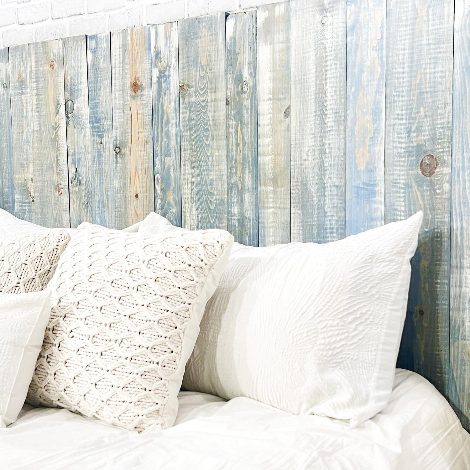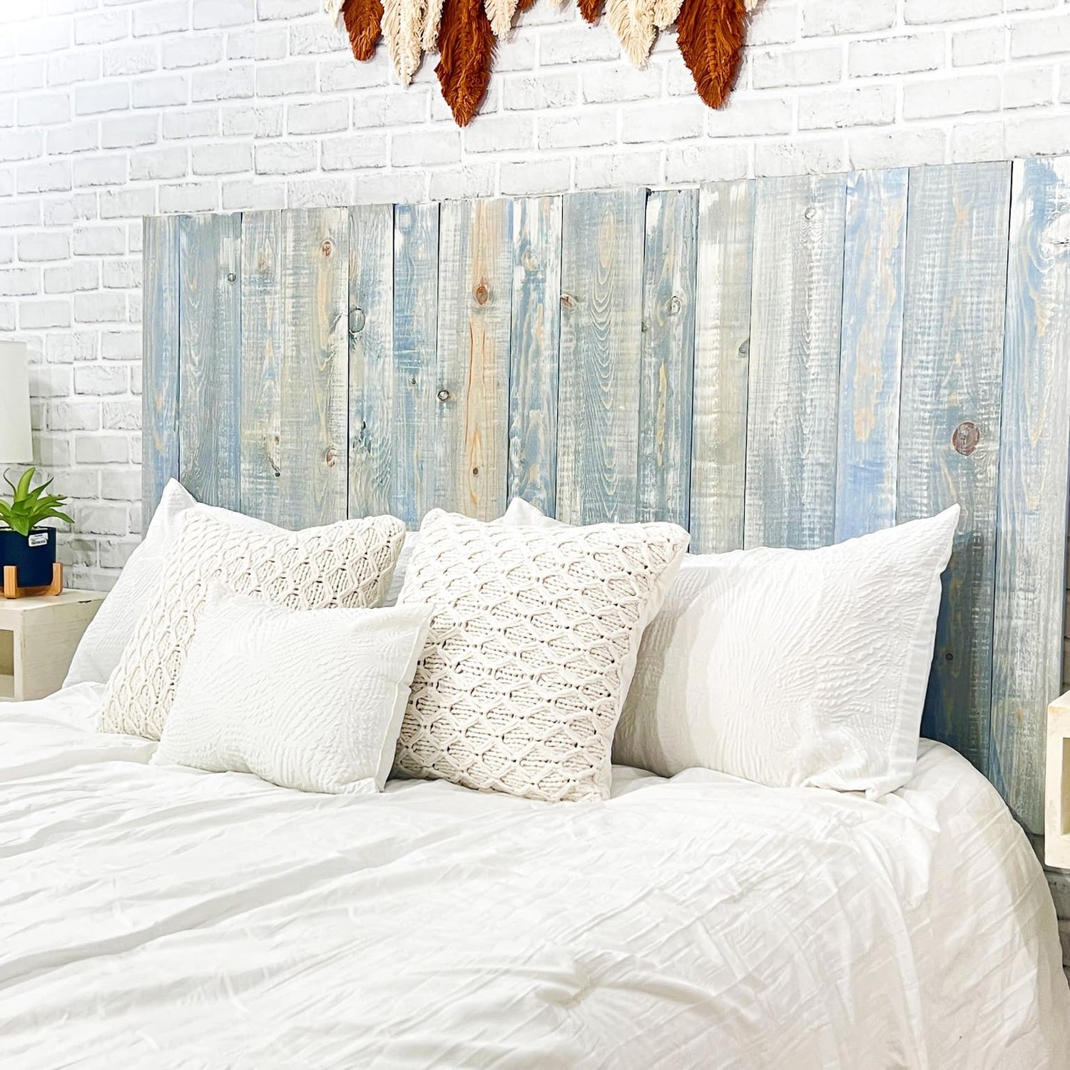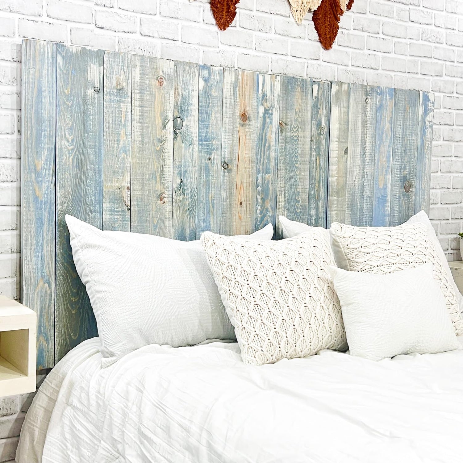 Barn Walls Blue Powderwash Headboard, Farmhouse Design, Wood Headboard, Wash Finish, Floating Panels, Wall Mount, Adjustable Height, Queen Size