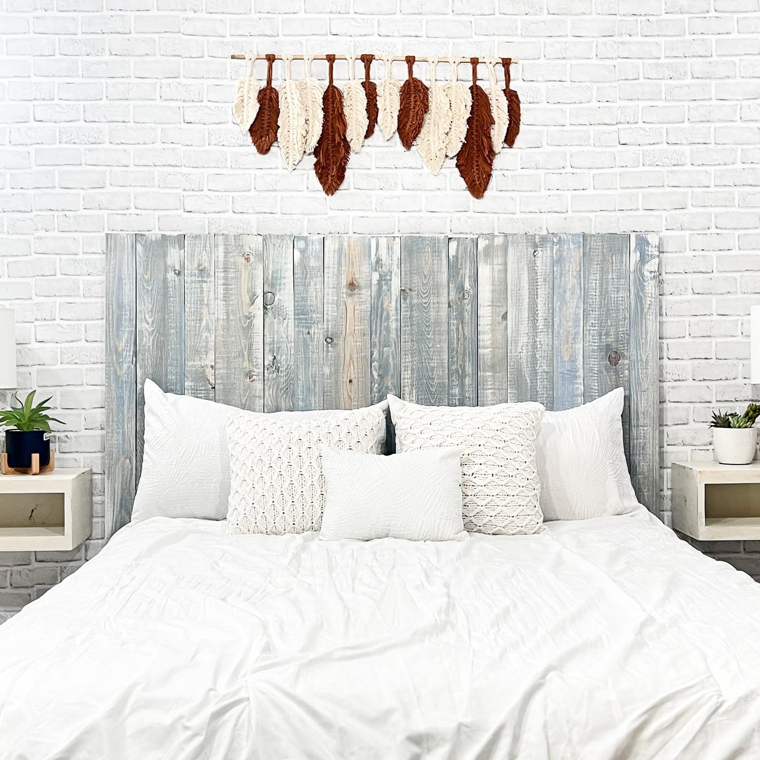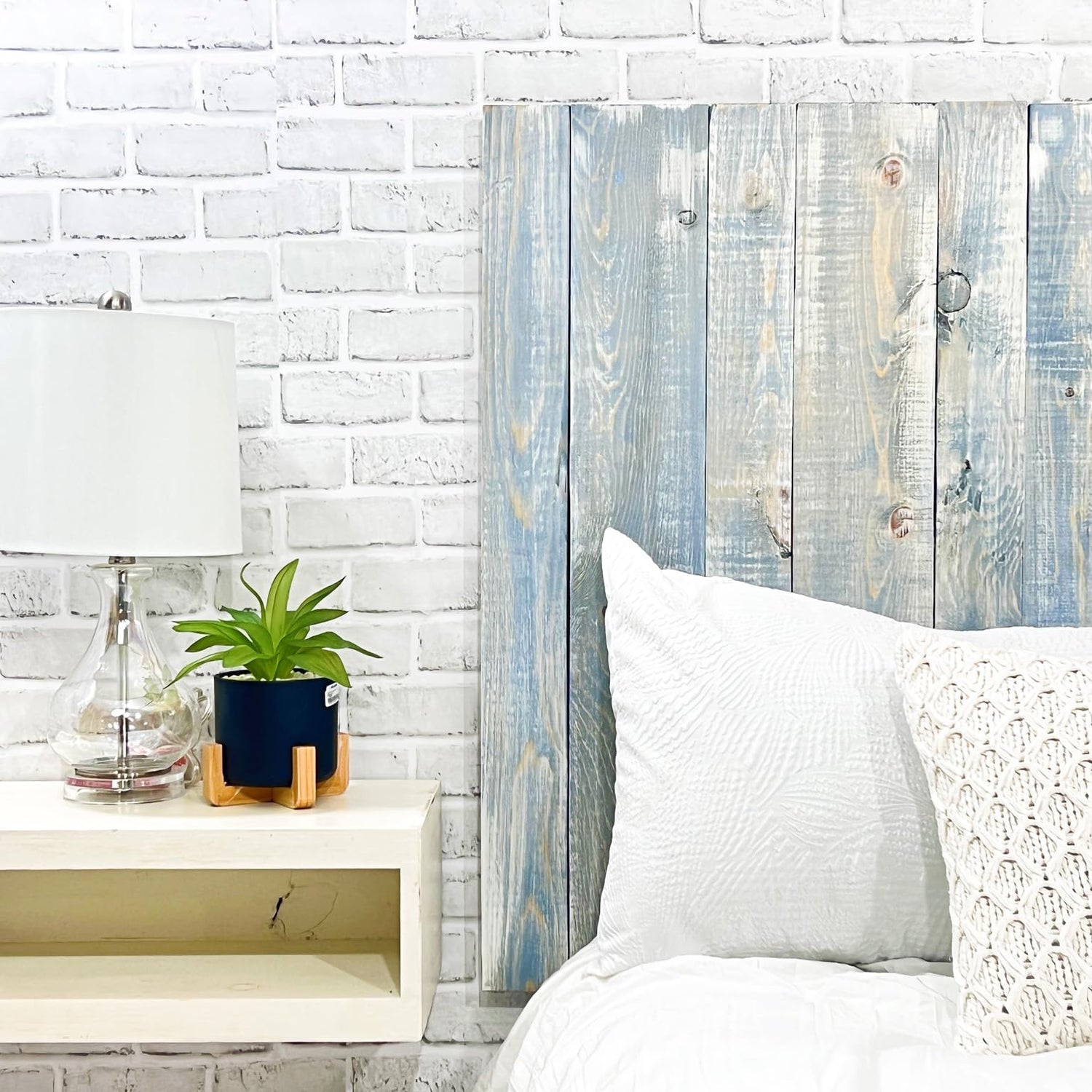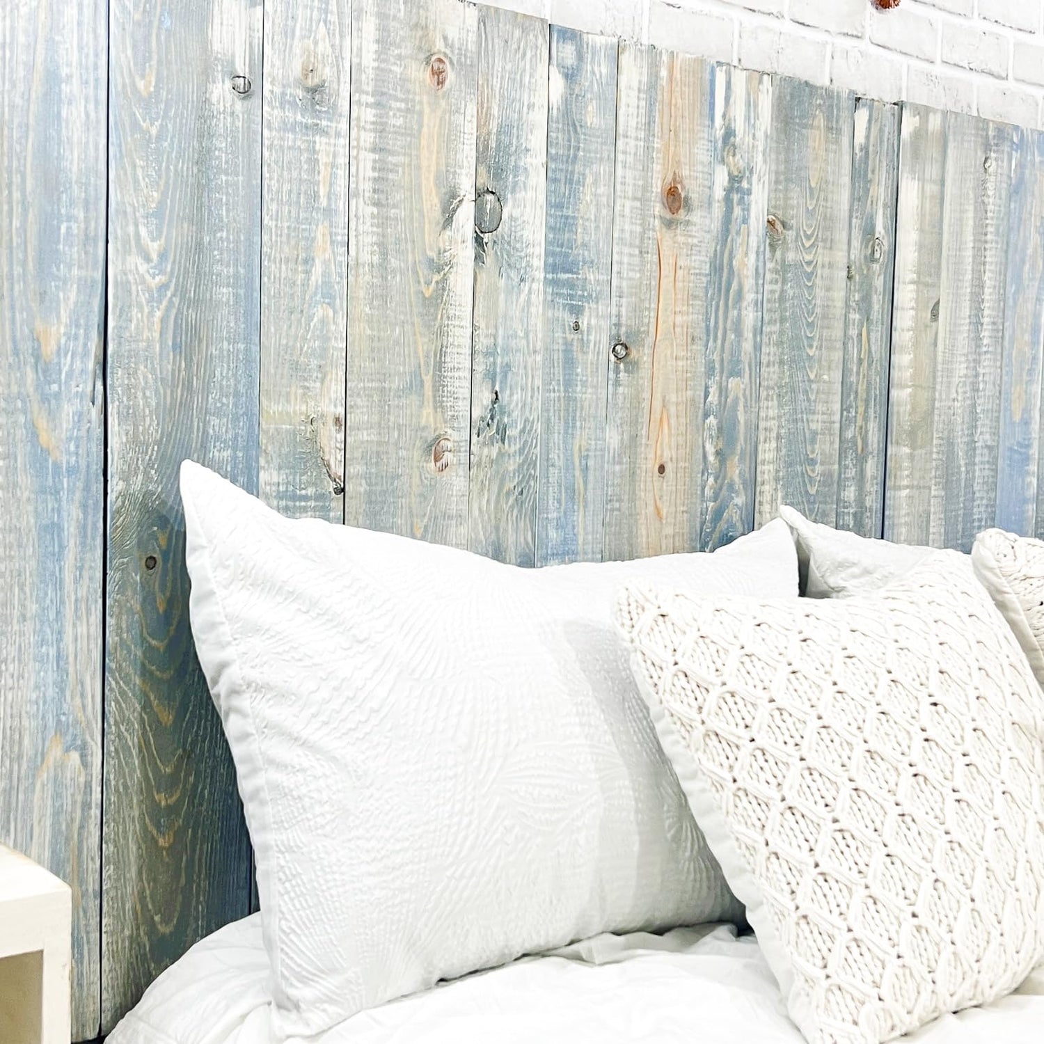 Barn Walls Blue Powderwash Headboard, Farmhouse Design, Wood Headboard, Wash Finish, Floating Panels, Wall Mount, Adjustable Height, Queen Size
