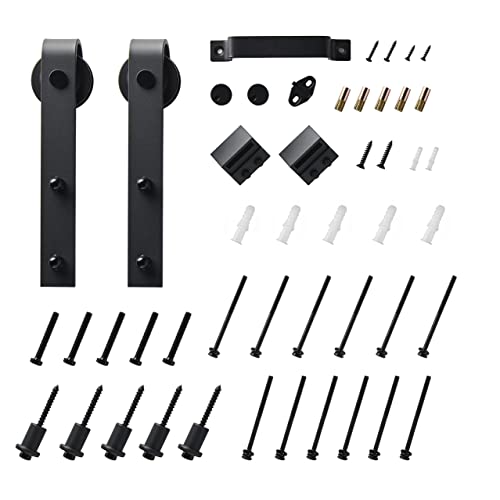 Details: Package Included: All screws included along with pre-drilled screw holes wood panels and detailed instruction ensuring ease of assembly. (Sliding Door Hardware is Included).The sliding barn door hardware kit has passed more than 10,000 opening and closing tests. If you encounter any problems in use, our professional customer service team will answer you.