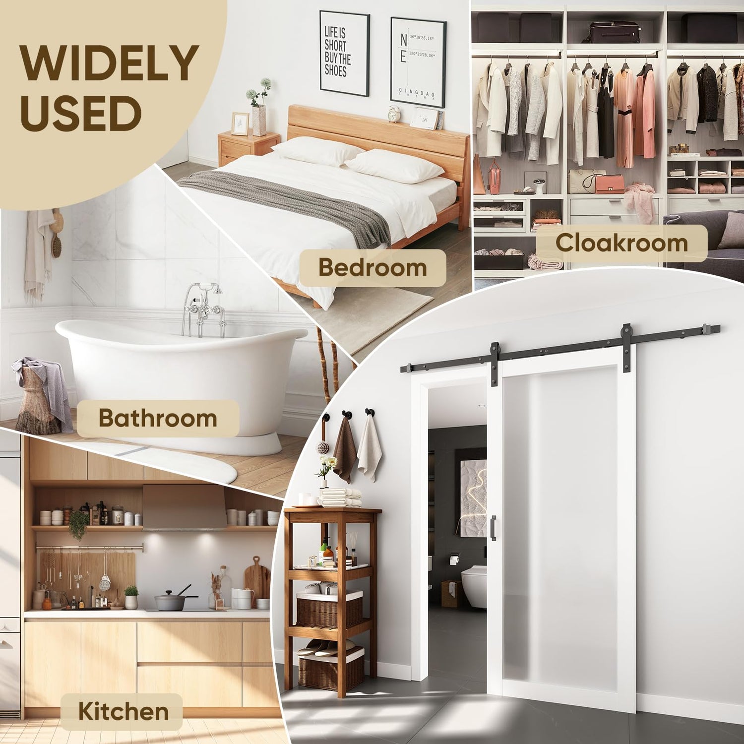- MODERN STYLE & SAVING SPACE: The combination of frosted glass and wood is simple and elegant. Space-saving sliding design is a great idea to your living room, bathroom, bedroom, kitchen, closet, pantry or laundry room. It could fit any room style.