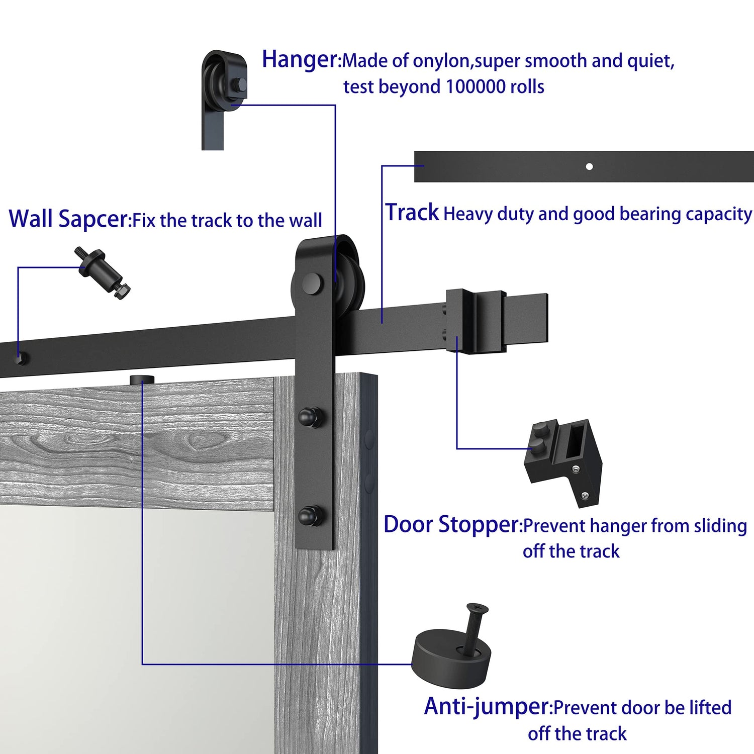 - EASY TO ASSEMBLE AND INSTALL: Accessories are complete and the pre-drilled holes for the barn door ensure speed and ease of installation. The bottom of the door has a pre-made groove for the floor guide.We also provide a detailed professional installation manual for your reference.