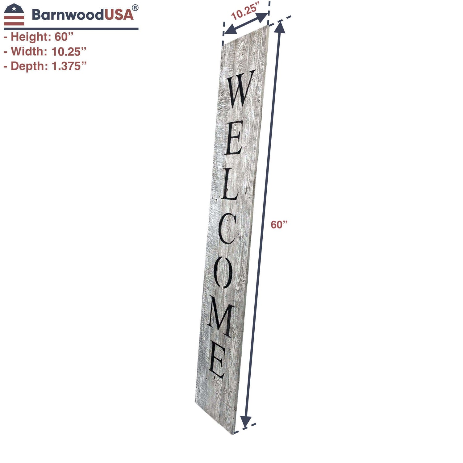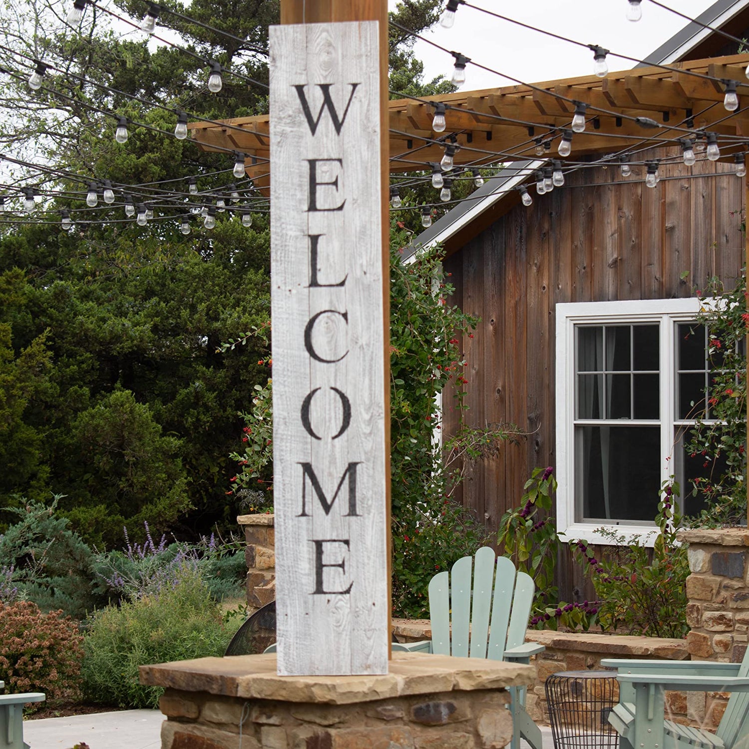BarnwoodUSA | Farmhouse Rustic Welcome Sign for Front Porch | 5ft Front Door Décor | Vertical Barnwood Welcome Sign | Antique Outdoor Standing Sign | Sturdy | White Wash
