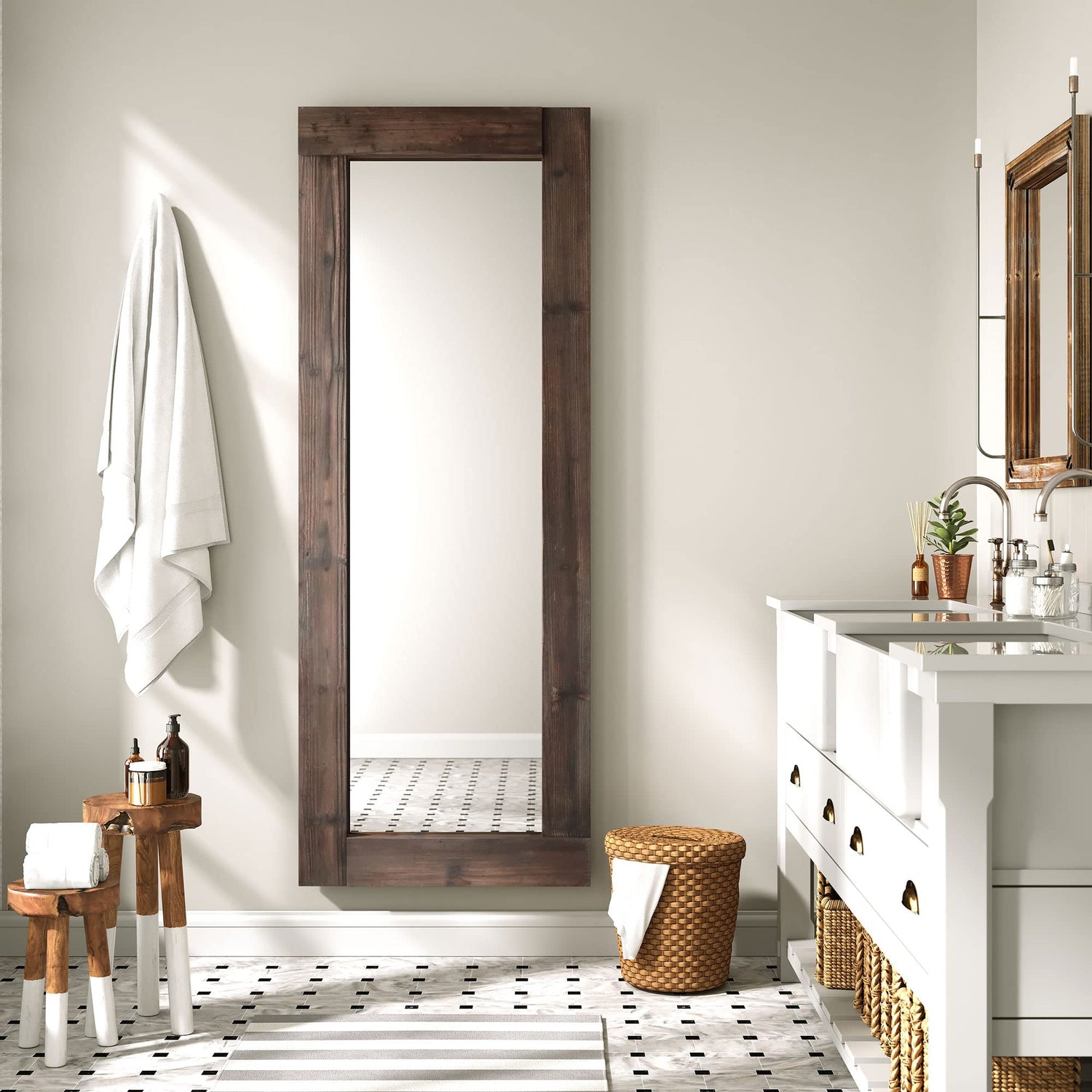 - Dimensions - Full size mirror frame dimensions: 24" x 2.5" x 64". Rustic floor mirror dimensions: 16" x 56". Rustic Wood Mirror Frame Width: 4". Color: Brown.