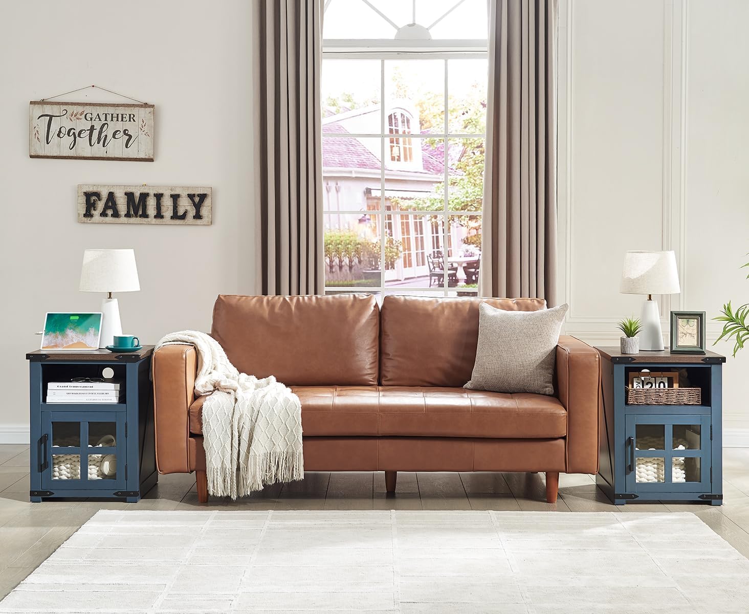 - 3-Tier Storage : Keep life simple with this wood farmhouse side table. An open cubby rest at the top of the unit, which provides a great place to store electronics, small boxes, or other accessories. The bottom of the end table has storage with tempered glass door for holding daily essentials and decors.