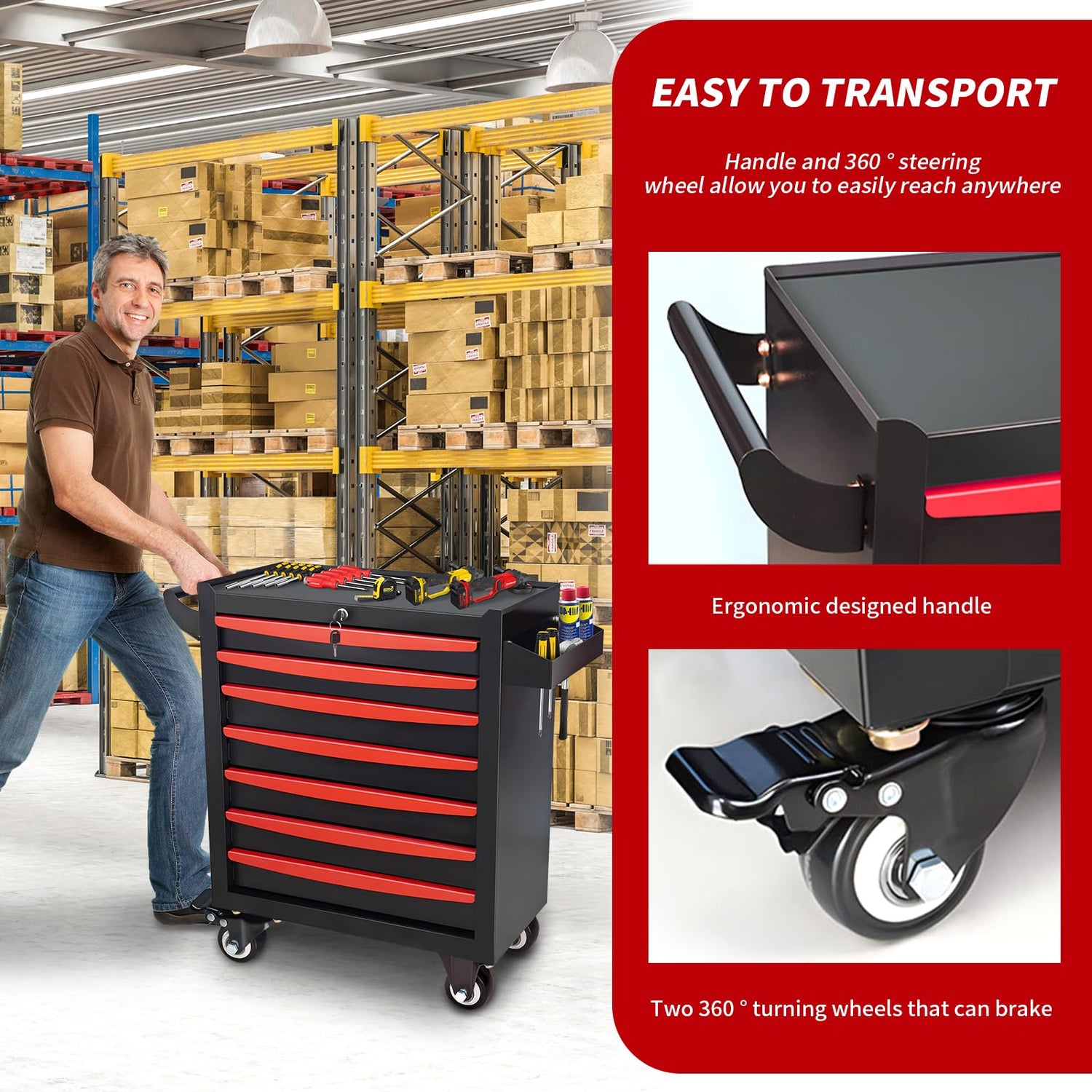 Barphygo 7-Drawer Rolling Tool Chest, Metal Tool Box with Wheels & Lock Garage Storage Cabinets Tool Cart Toolbox Organization Workbench for Workshop, Warehouse & Repair Shop