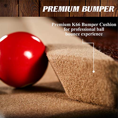 - ACCESSORIES INCLUDED: This pool table comes with a complete set of billiard accessories to start playing right away and includes one set of 2.25” billiard balls, two 57” cue sticks, one triangle, two chalks, and one brush