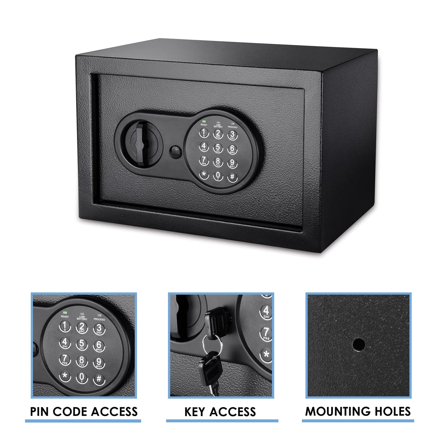 - Compact digital keypad safe fits practically anywhere for unrivaled convenience and has all the space needed to secure jewelry, money, passports, compact electronics, wallets, and much more